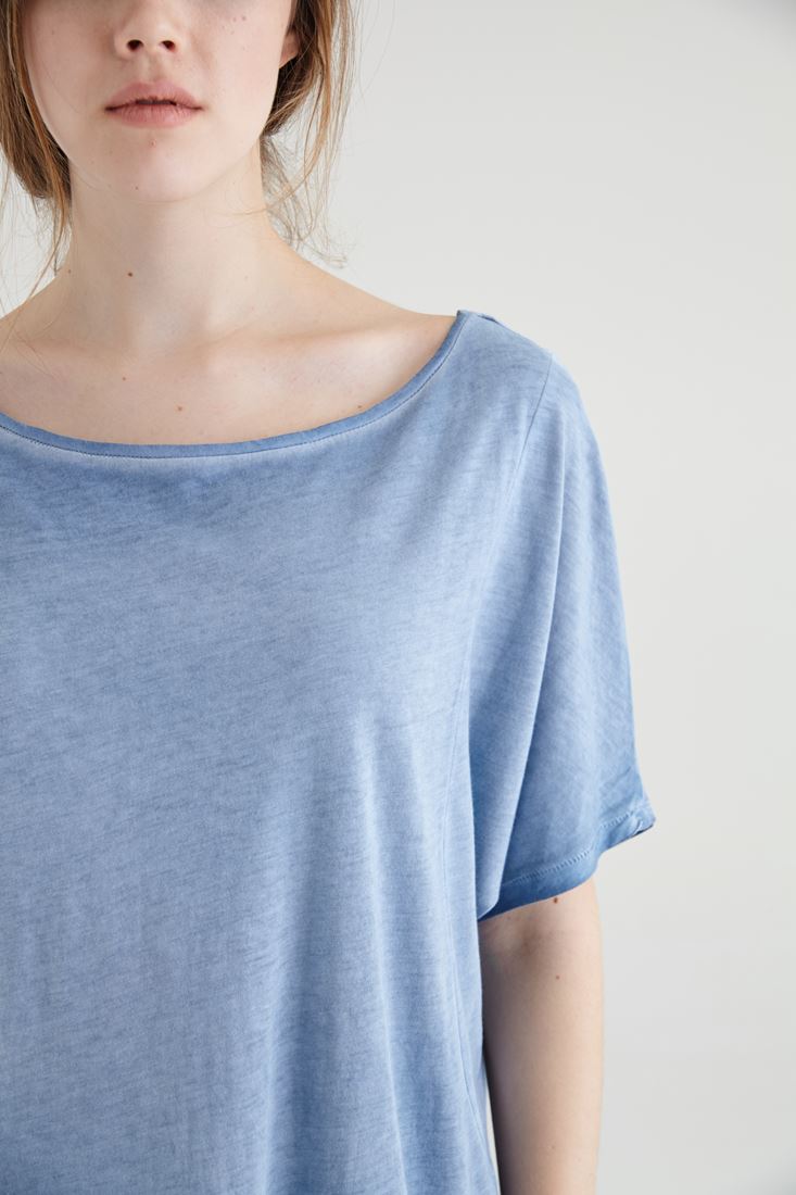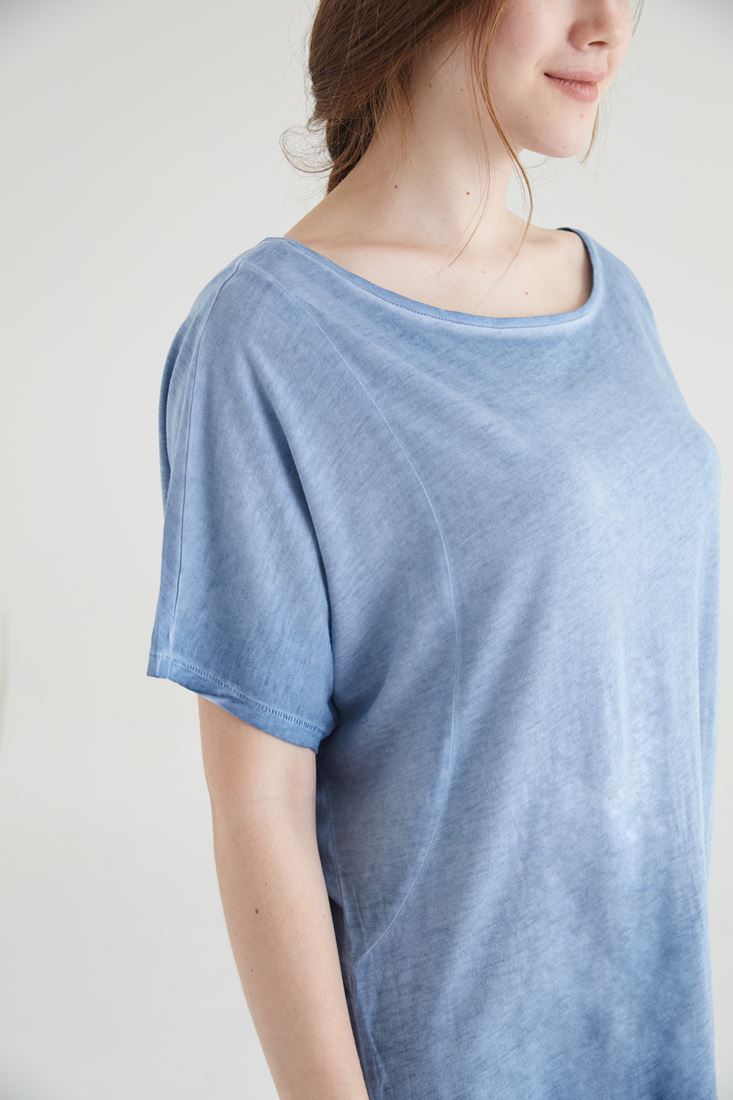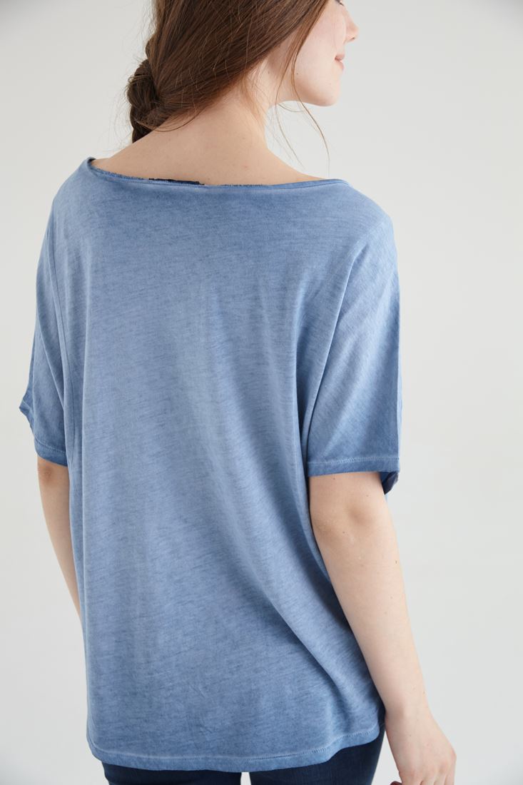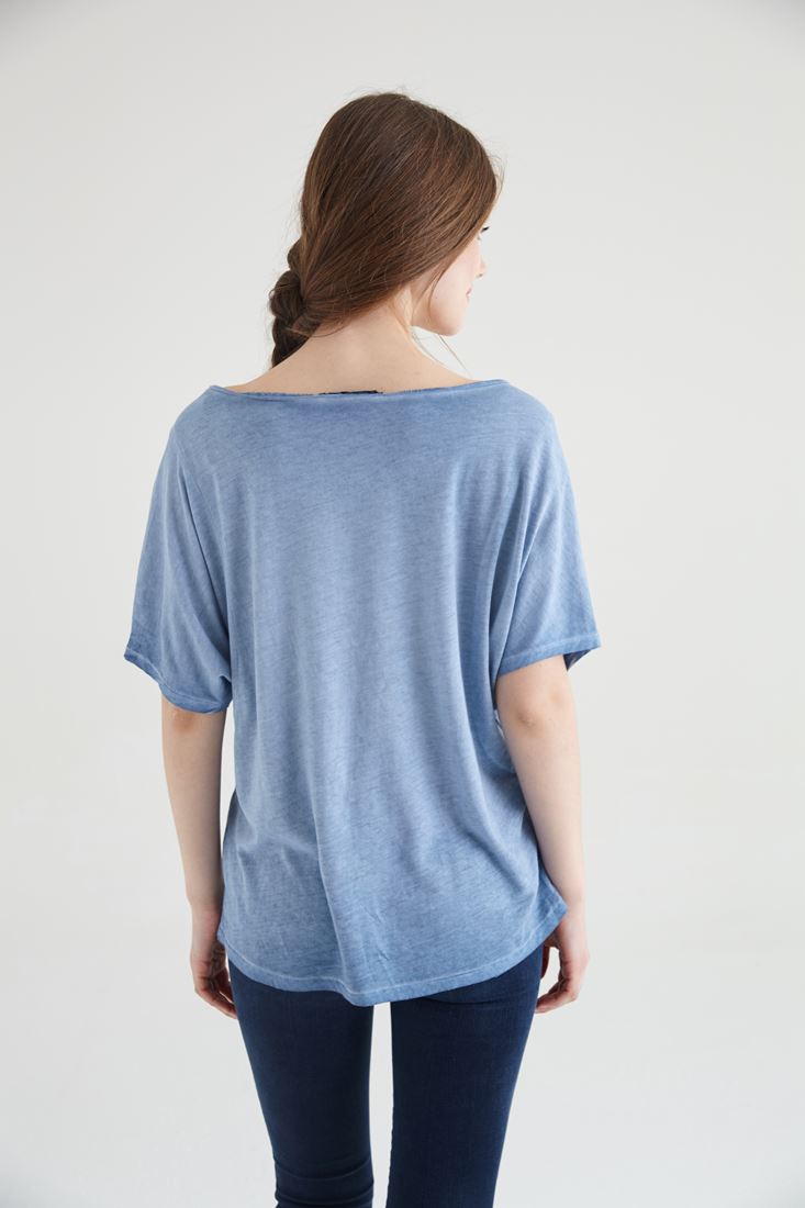 • Bayan Lacivert Bot Yaka Dökümlü Tişört