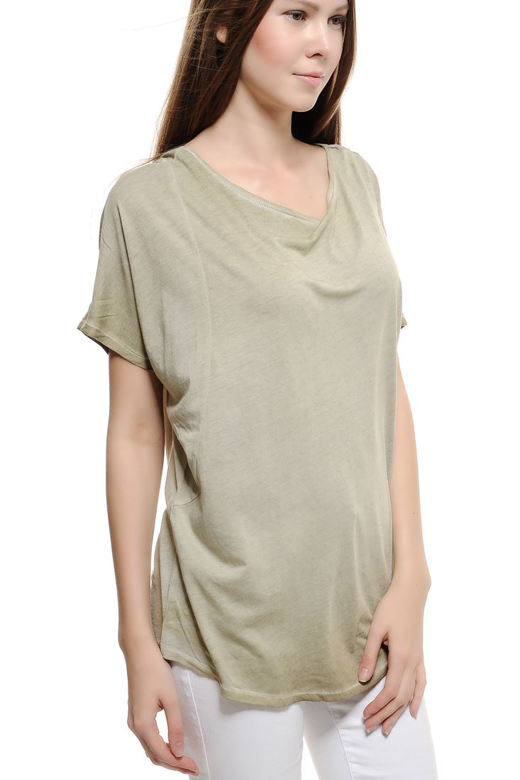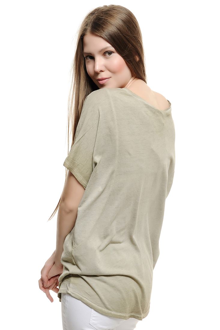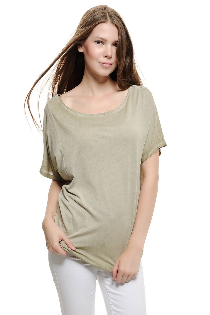 • Bayan Yeşil Bot Yaka Dökümlü Tişört