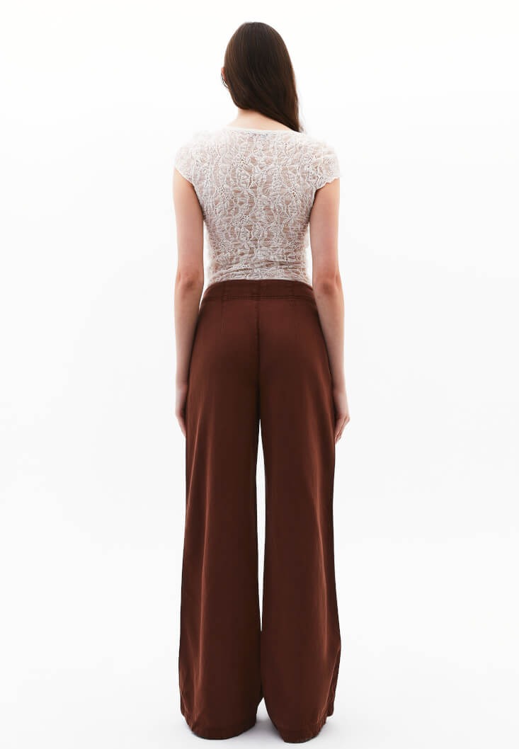 Orta Bel Wide-Leg Pantolon ve Crop Tişört Kombini