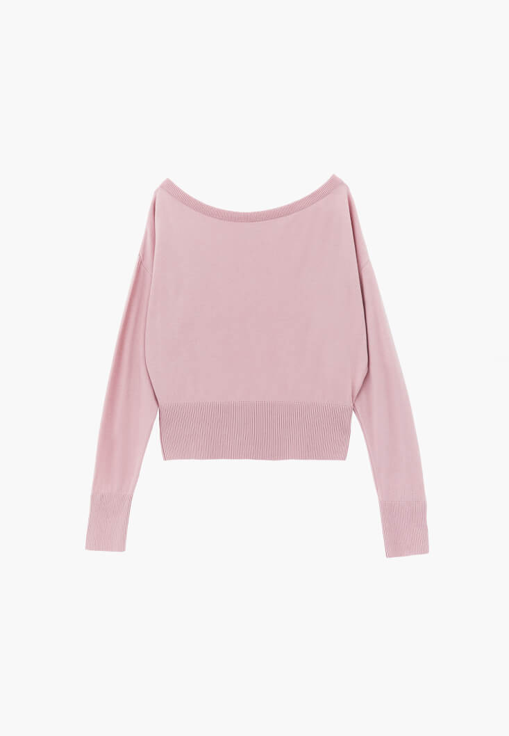 Viskon karışımlı triko, bedenden uzak loose fit, bot yaka, uzun kollu, kol ucu ve beli jakarlı örgü.