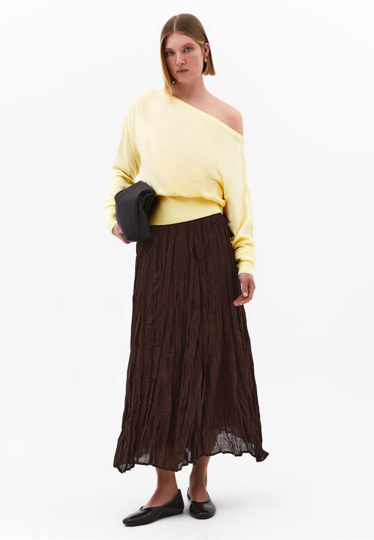 Bedeni zarifçe saran ama hareket özgürlüğünden ödün vermeyen esnek yapısı, duruşunuza çabasız bir şıklık kazandırır. Dokunun prestijli akışkanlığı, en sade alt parçaları bile podyum şıklığına taşıyacak bir estetik vadediyor. Doğallığa yapılan bu güçlü vurgu, parçaya hem sürdürülebilir bir değer hem de zamansız bir güç katıyor.