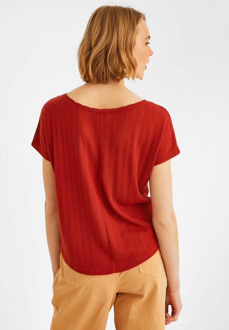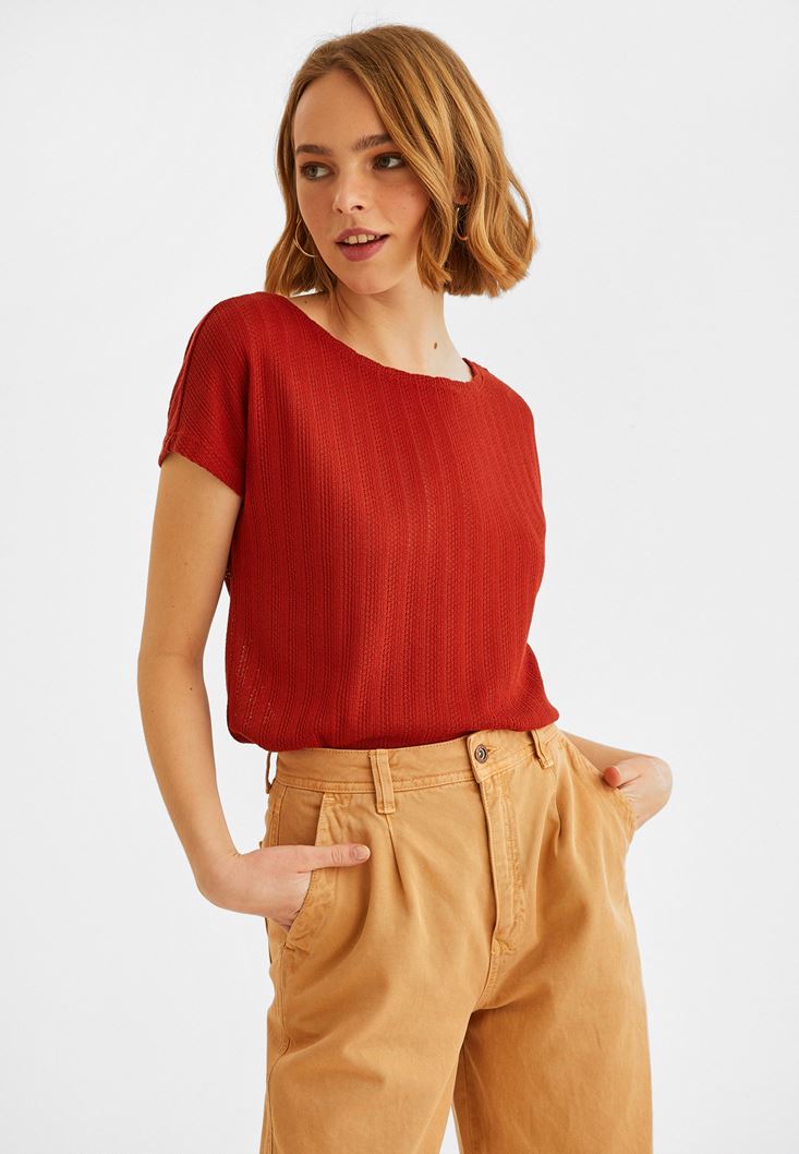 Bot Yaka Kolsuz Top bluz modeli küçük delikli örgü dokusuyla özgün detaylar ile dikkatleri üzerine çekiyor. Yuvarlak olan yaka kısmı ve uçlarda gördüğümüz oval kesim, klasik ve modern tarzı bir araya getirdiği için göze hoş görünüyor. kadın bluz modeli, detaylarla meydana gelen şıklığı net bir şekilde yansıtıyor. Kendini gösteren parçalardan biri olduğu için kombinlere mükemmel dokunuşlar yapıyor. Şort, etek ya da pantolon modelleri ile uyum yakalayabilen bluz, kombinlerinizin vazgeçilmez parçası olmaya hazır. Ayrıca hem sade hem de farklı duruşu olan bluz modeli ile şıklığınızı ön plana çıkaran kombinler oluşturabilmek için; uzun bir kolye ya da küpe kullanabilirsiniz.Oxxo'nun modern ve şıklıktan ödün vermeyen tasarımları içinden seçeceğiniz bu modeli keyifle kullanabilirsiniz.
