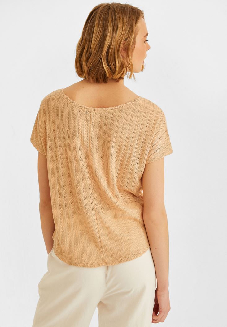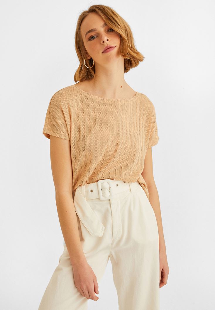 Bot Yaka Kolsuz Top bluz modeli küçük delikli örgü dokusuyla özgün detaylar ile dikkatleri üzerine çekiyor. Yuvarlak olan yaka kısmı ve uçlarda gördüğümüz oval kesim, klasik ve modern tarzı bir araya getirdiği için göze hoş görünüyor. kadın bluz modeli, detaylarla meydana gelen şıklığı net bir şekilde yansıtıyor. Kendini gösteren parçalardan biri olduğu için kombinlere mükemmel dokunuşlar yapıyor. Şort, etek ya da pantolon modelleri ile uyum yakalayabilen bluz, kombinlerinizin vazgeçilmez parçası olmaya hazır. Ayrıca hem sade hem de farklı duruşu olan bluz modeli ile şıklığınızı ön plana çıkaran kombinler oluşturabilmek için; uzun bir kolye ya da küpe kullanabilirsiniz.Oxxo'nun modern ve şıklıktan ödün vermeyen tasarımları içinden seçeceğiniz bu modeli keyifle kullanabilirsiniz.