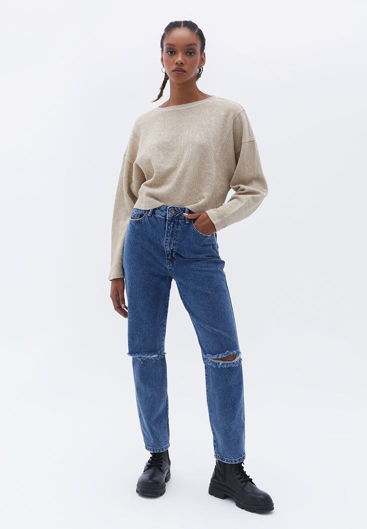 Bej Bot Yaka Loose-Fit Kazak