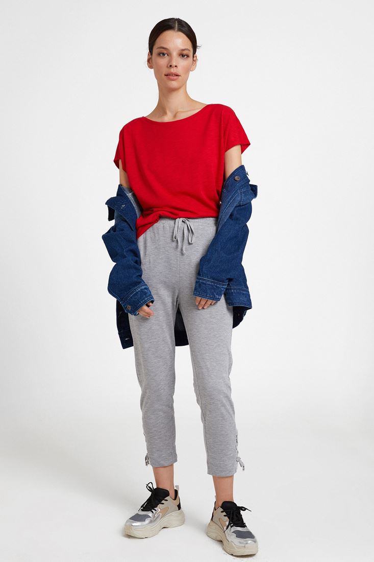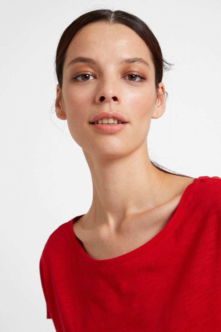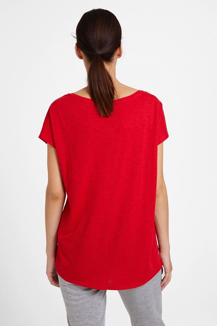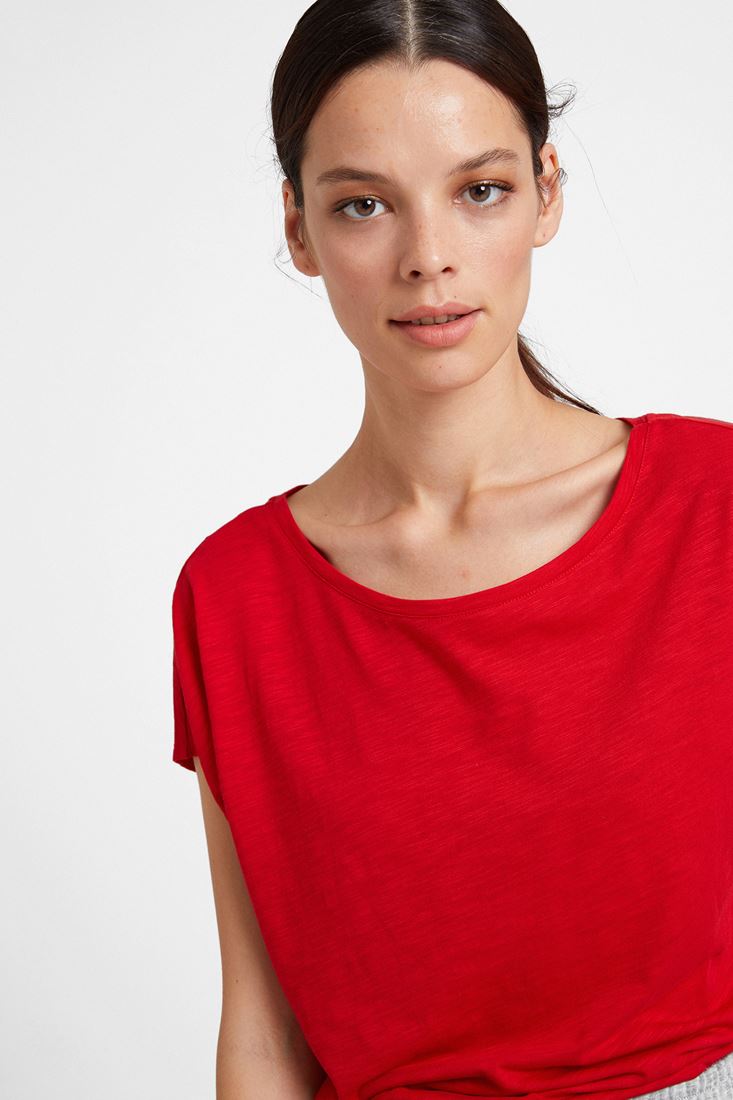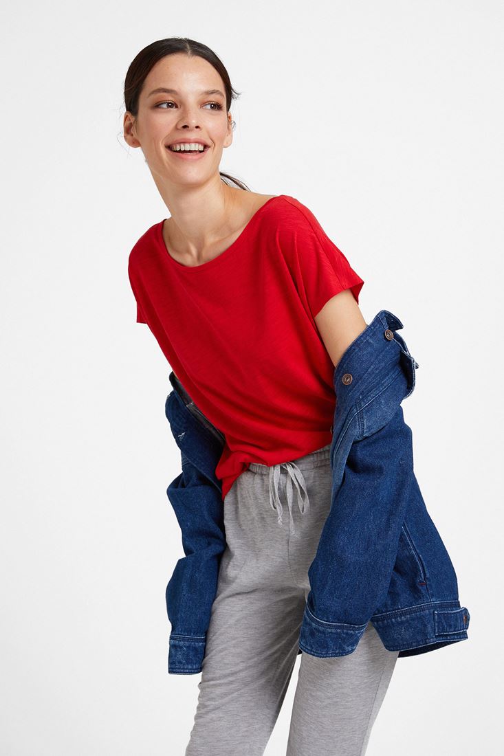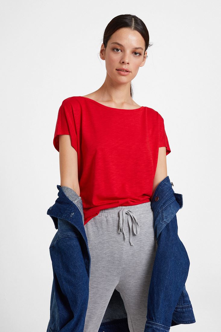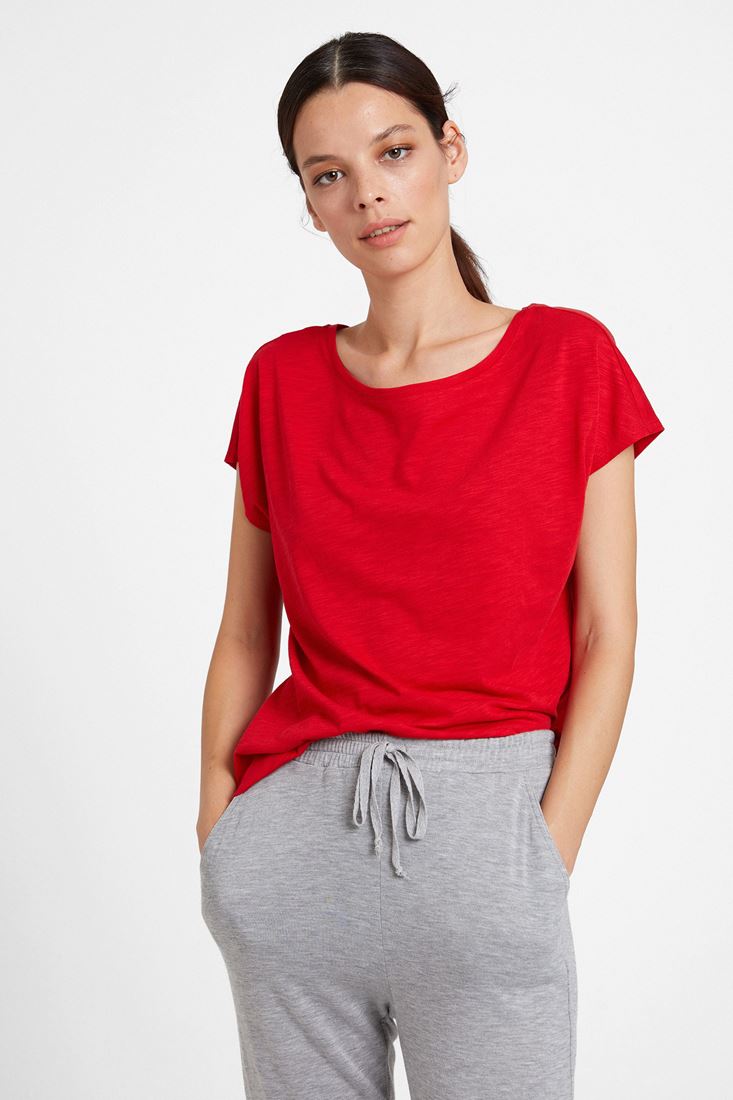• Bayan Kırmızı Bot Yaka Modal Karışımlı Tişört