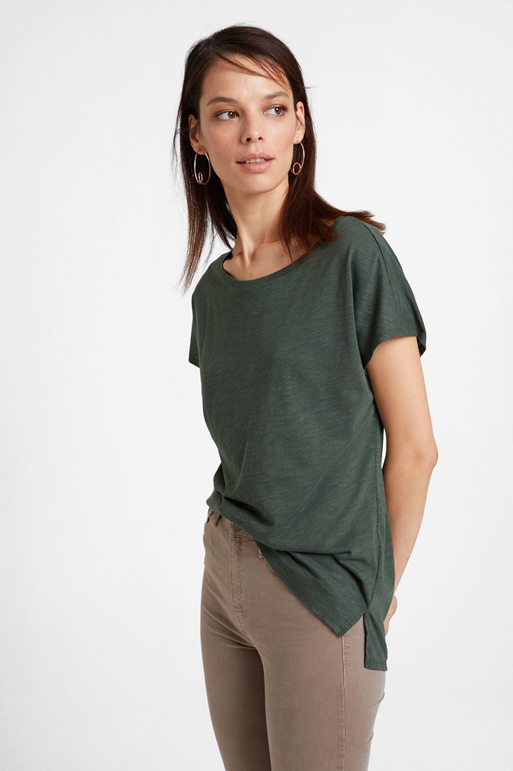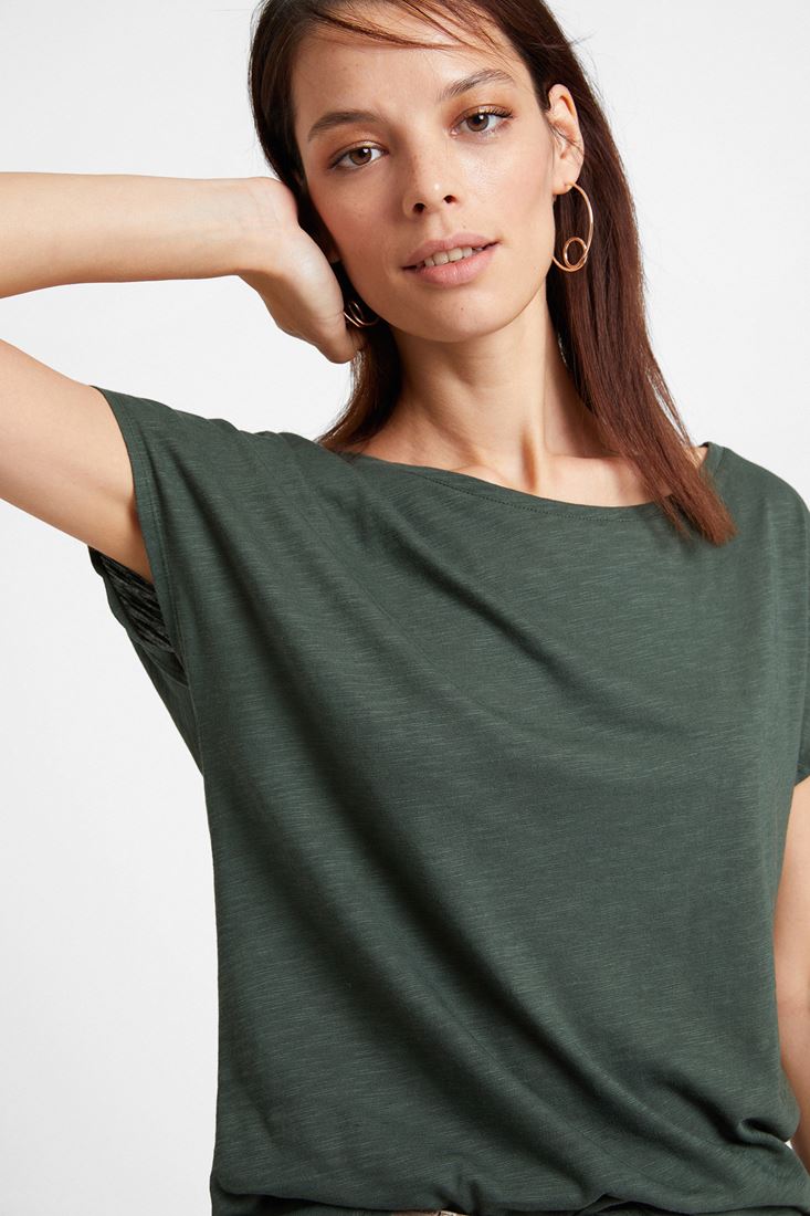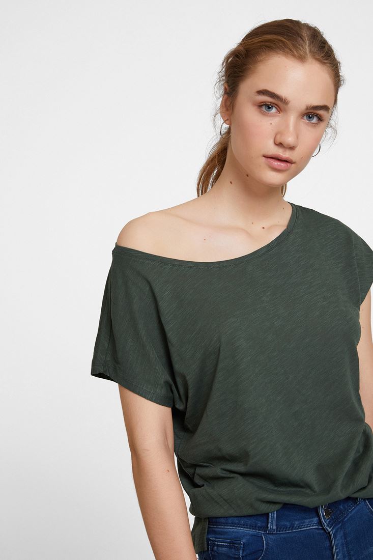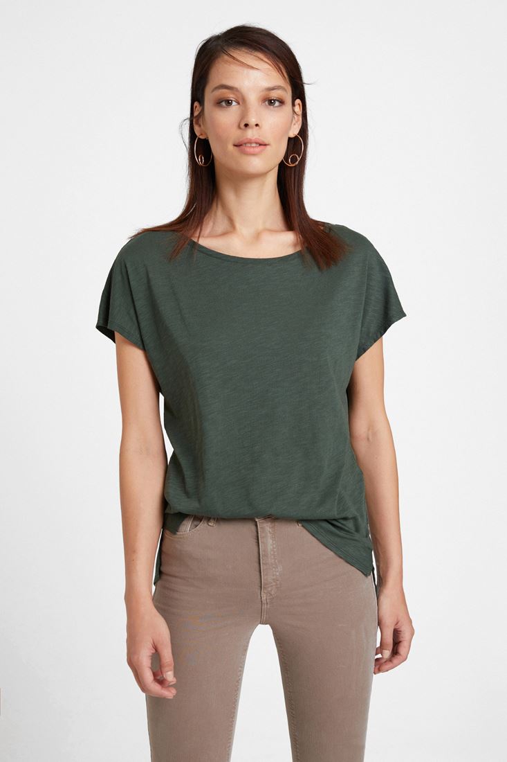 • Bayan Yeşil Bot Yaka Modal Karışımlı Tişört