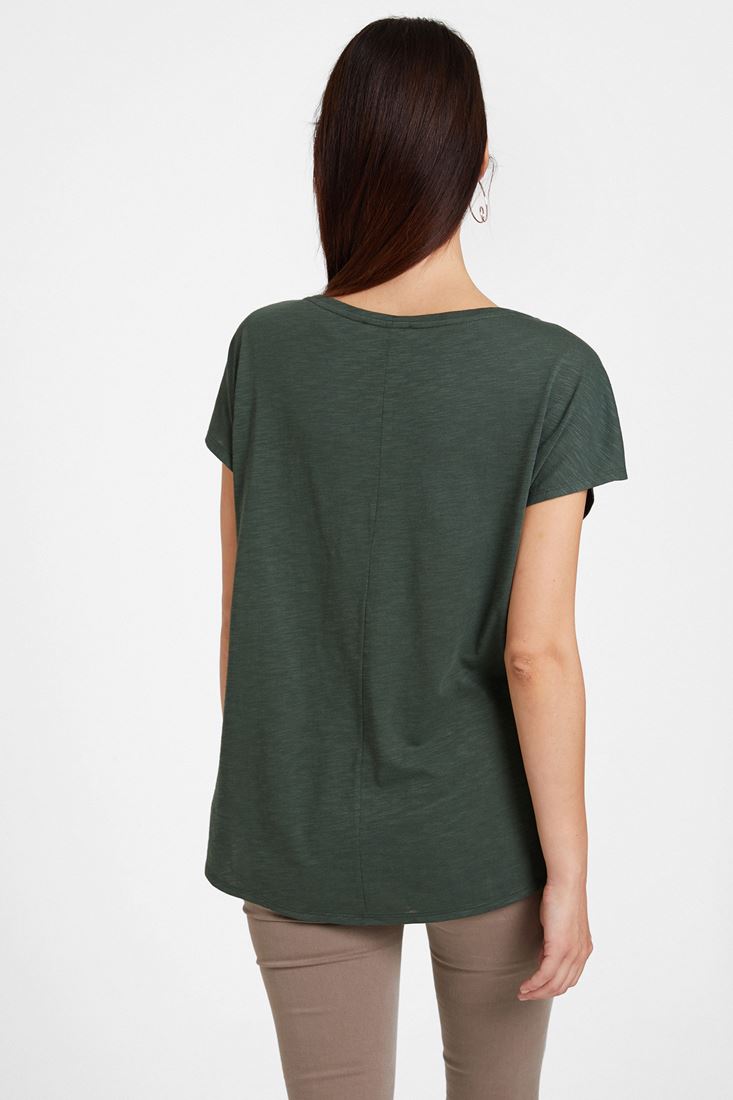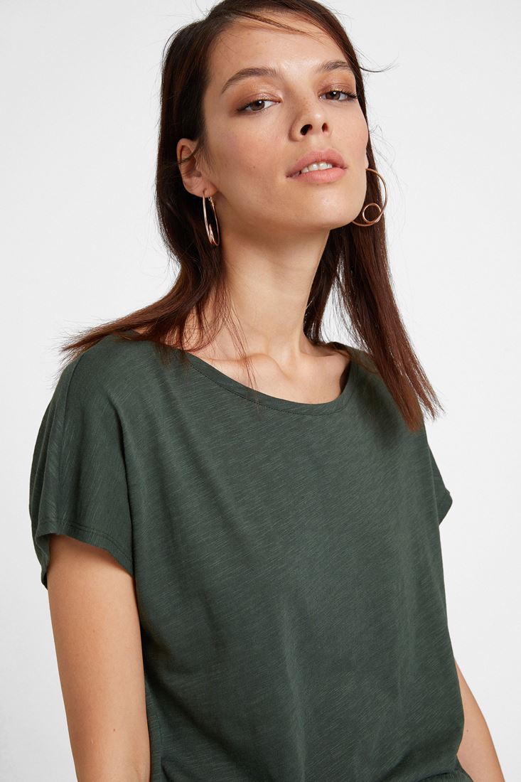 Yeşil Bot Yaka Modal Karışımlı Tişört