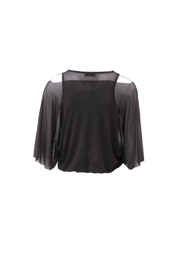 Antrasit Bot Yaka Oversize Tül Bluz