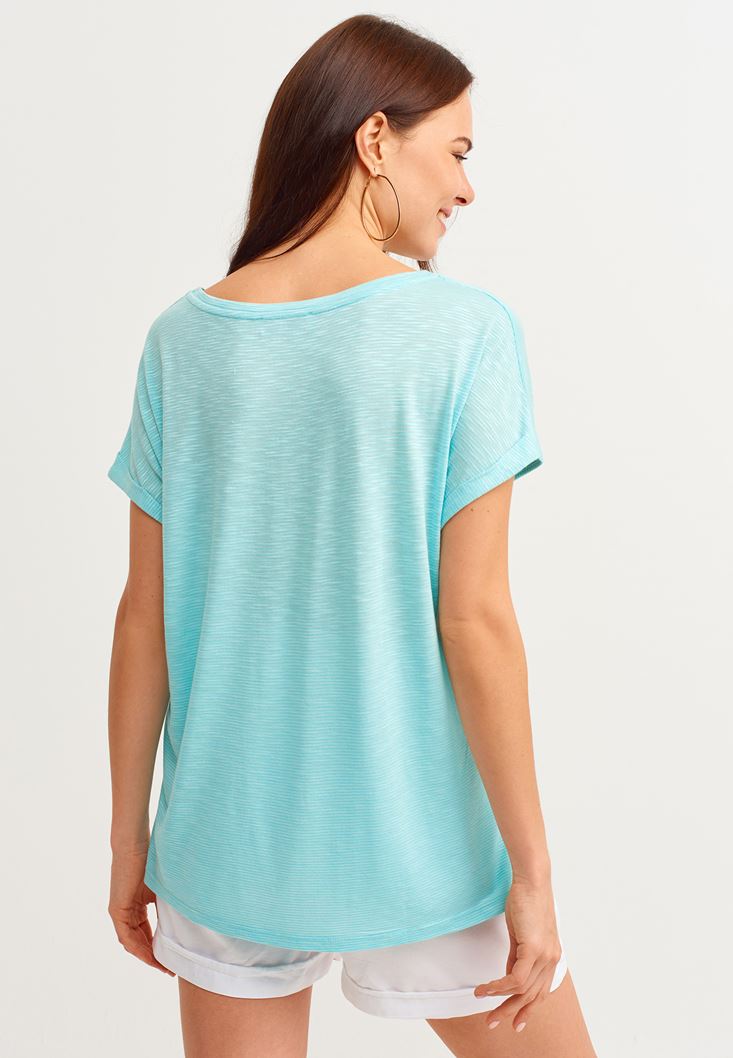 Mavi Bot Yaka Tişört