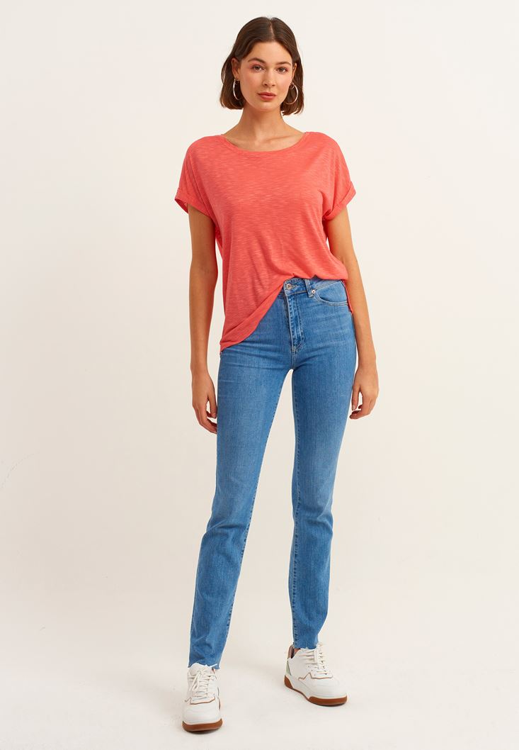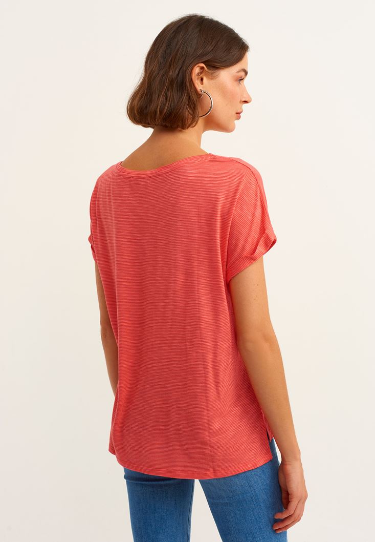 Kırmızı Bot Yaka Tişört