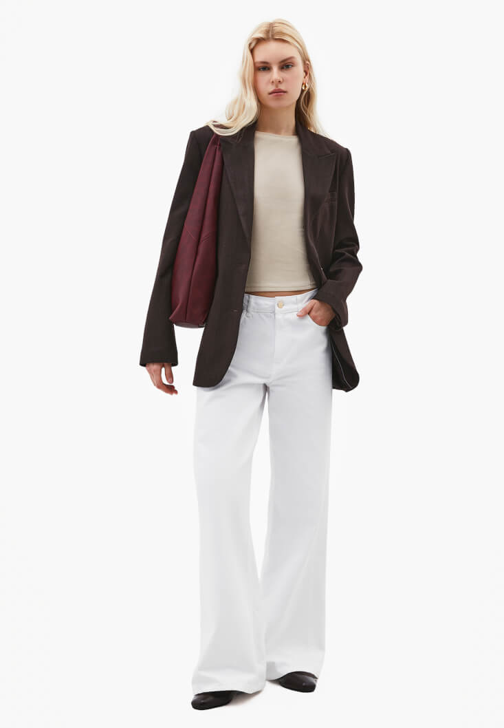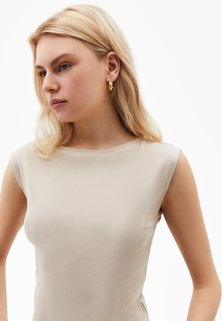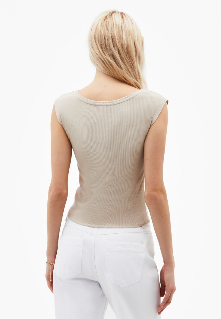 • Bayan Bej Bot Yaka Tişört