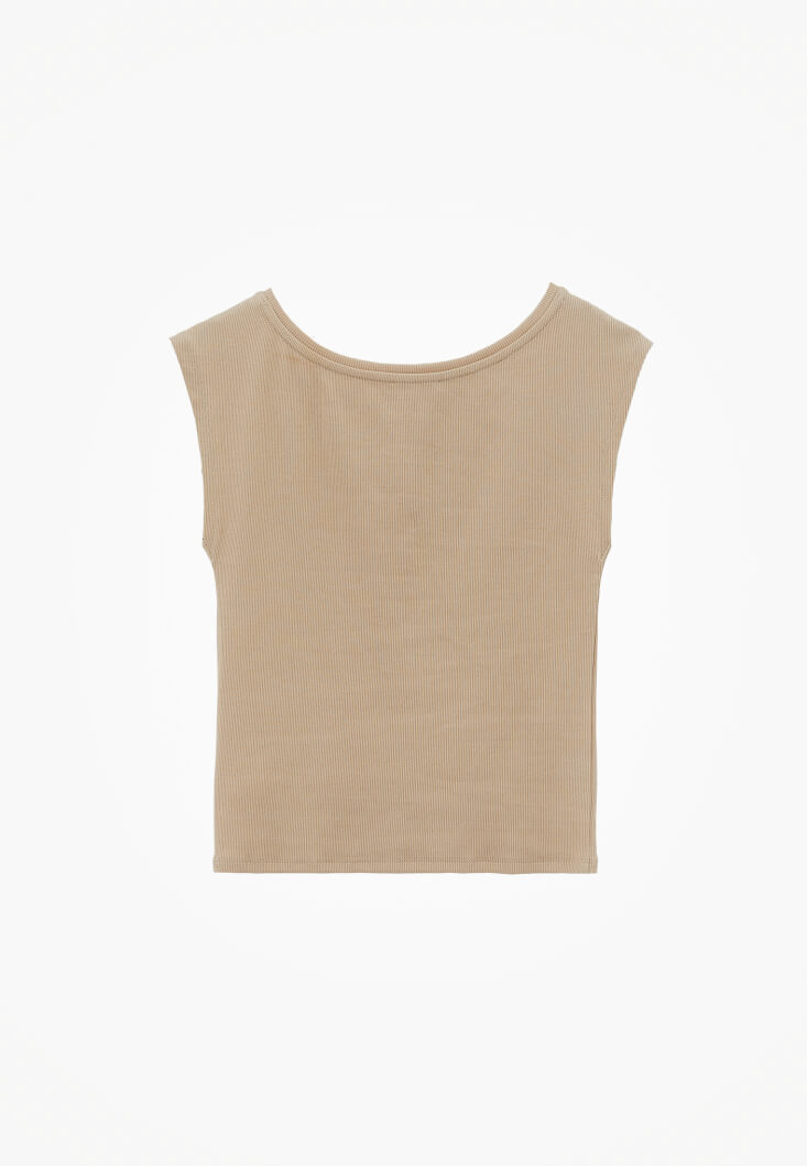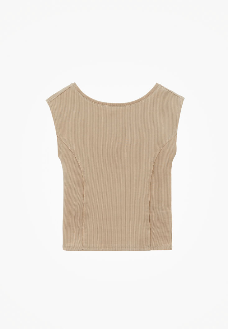 Bej Bot Yaka Tişört