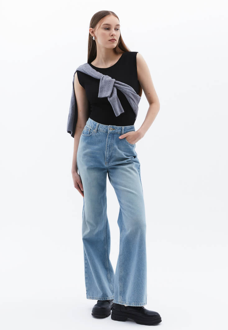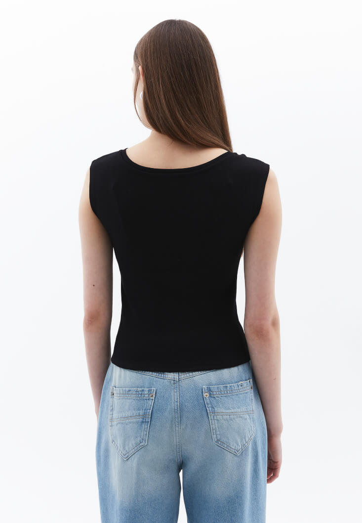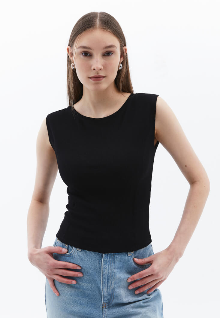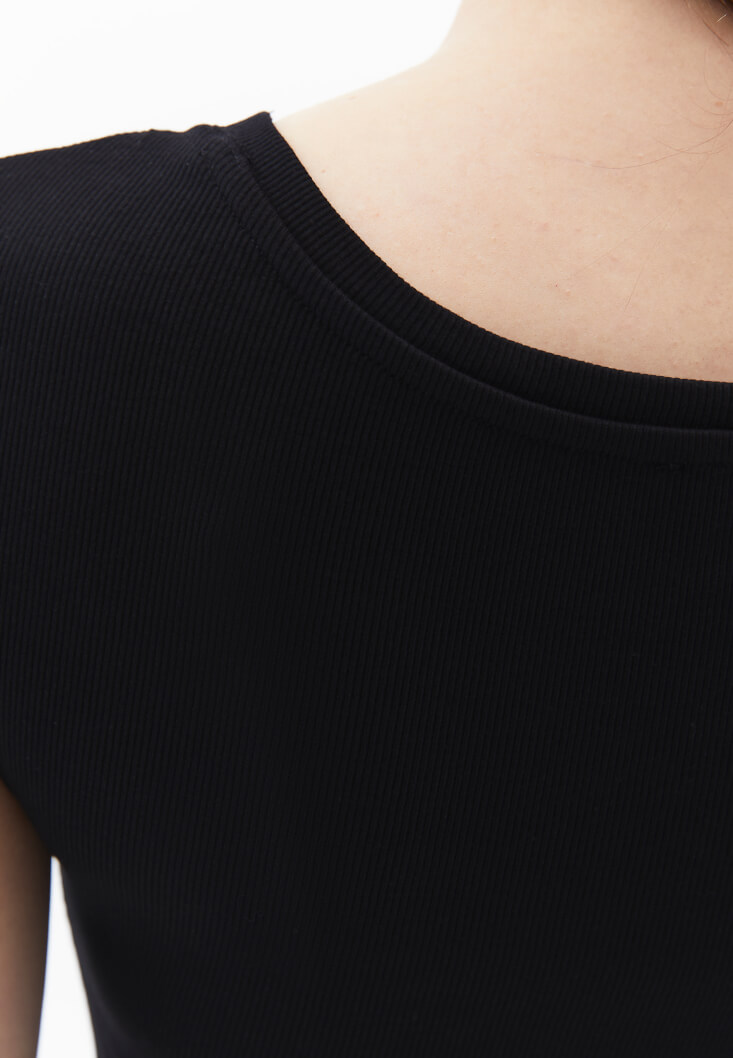Siyah Bot Yaka Tişört