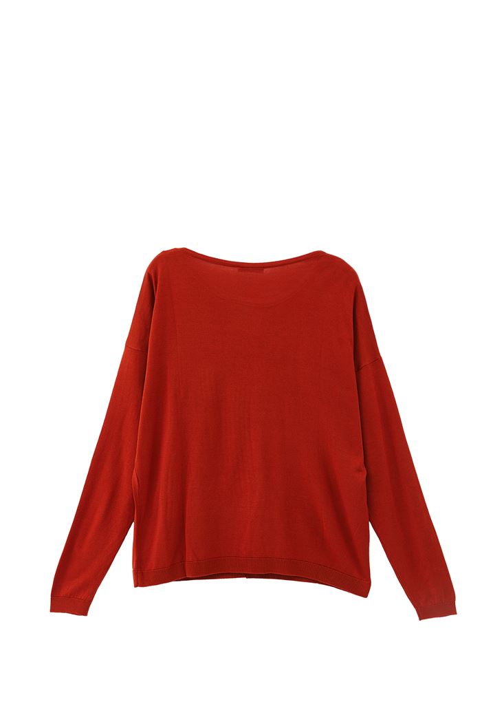 • Bayan Kırmızı Bot Yaka Triko Kazak