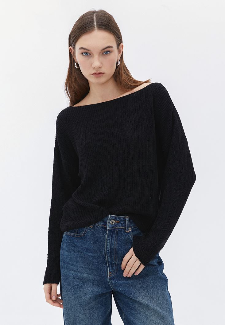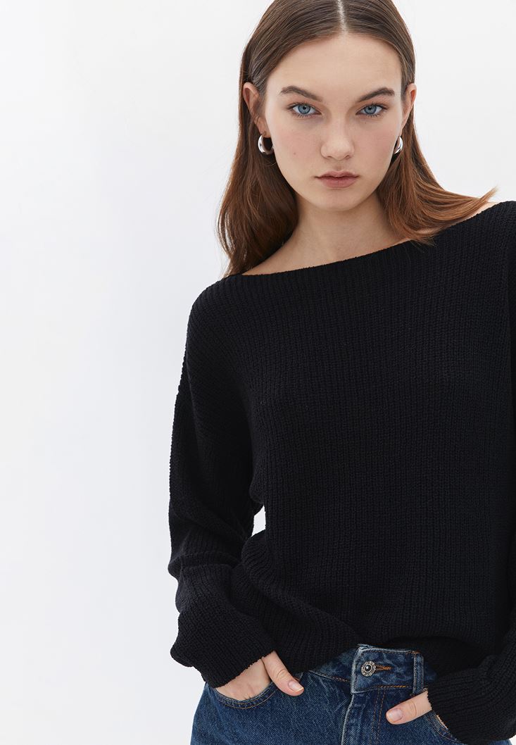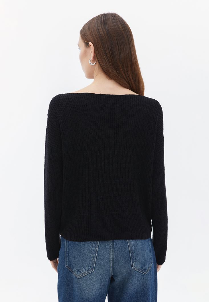 Siyah Bot Yaka Triko Kazak