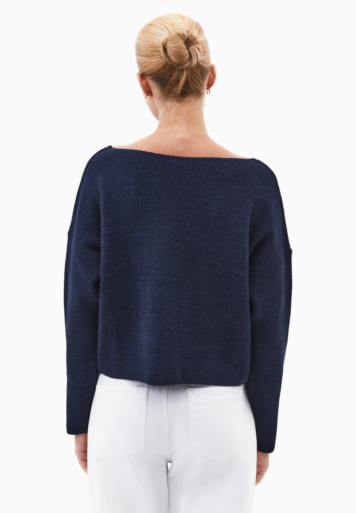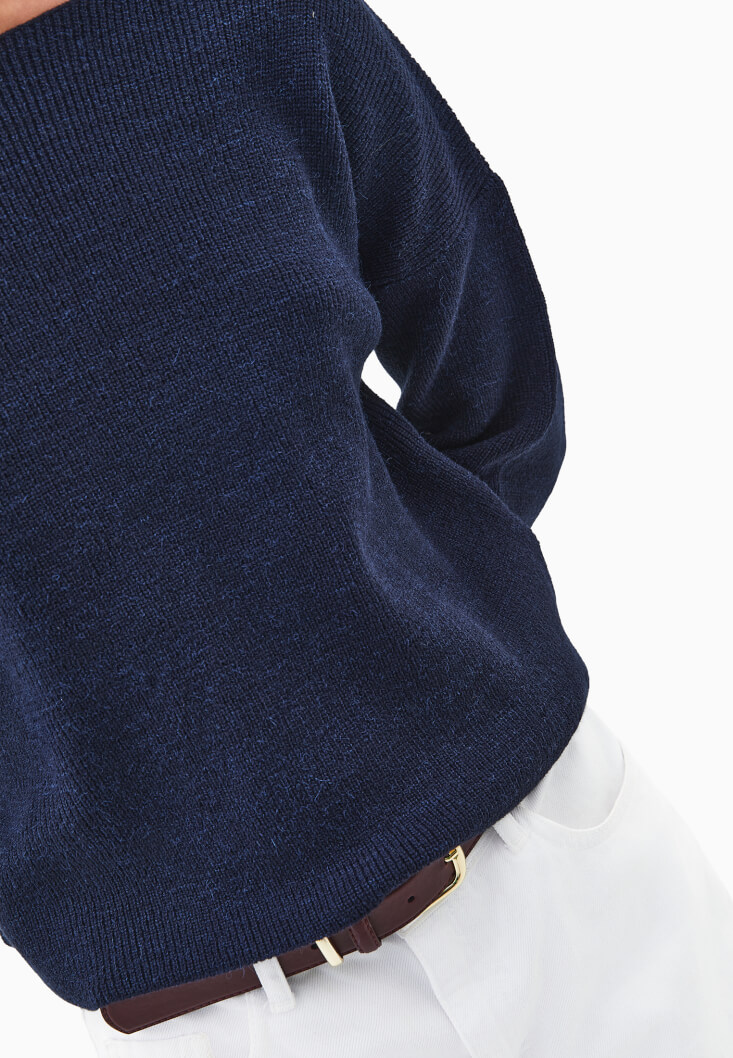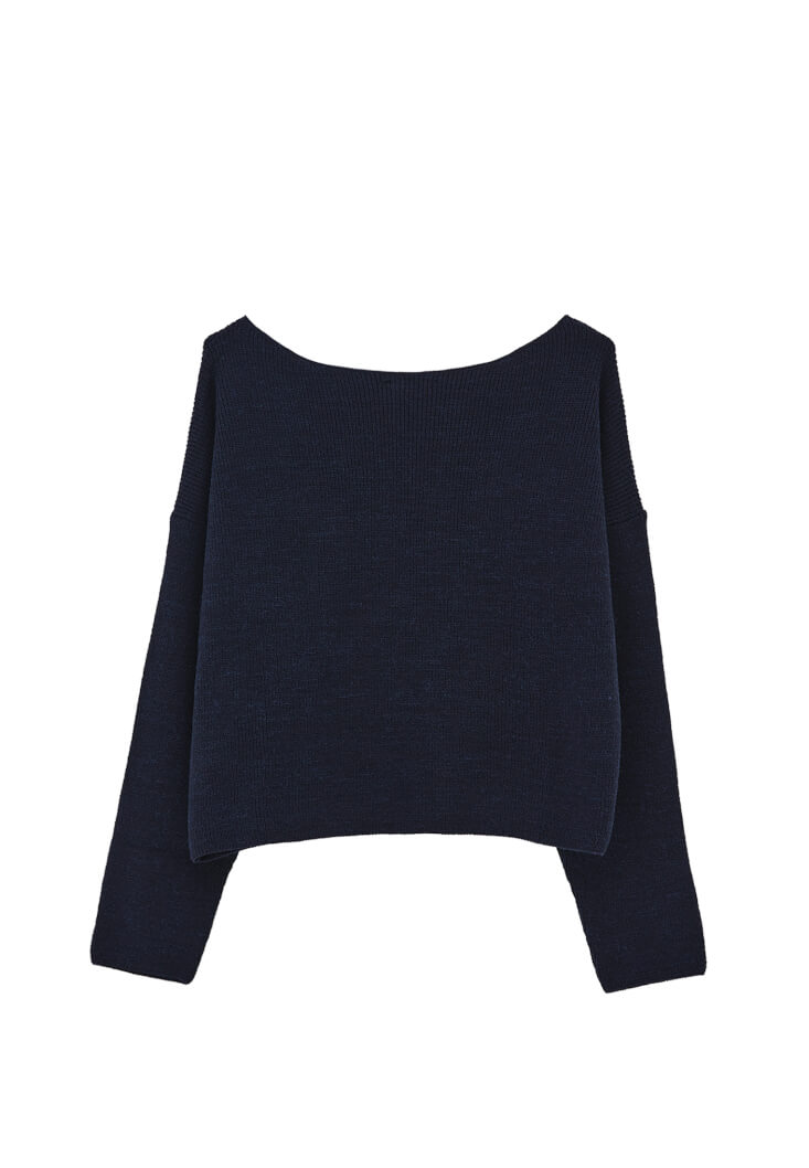 • Bayan Lacivert Bot Yaka Triko Kazak
