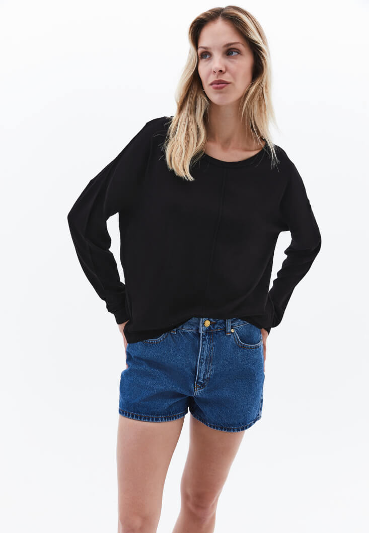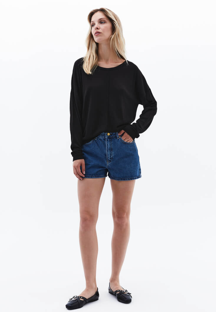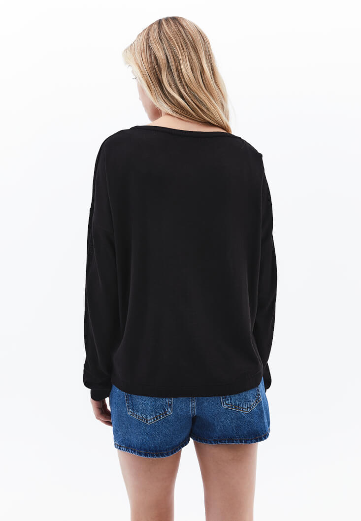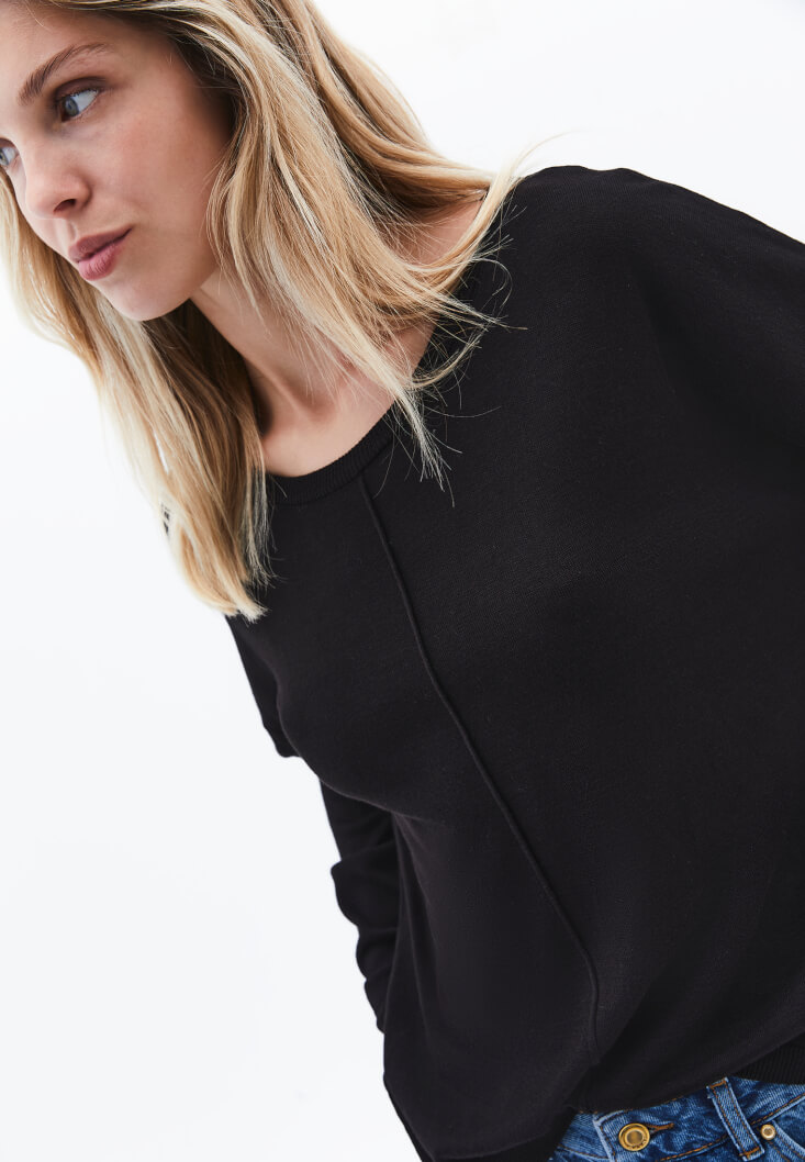 • Bayan Siyah Bot Yaka Triko Kazak