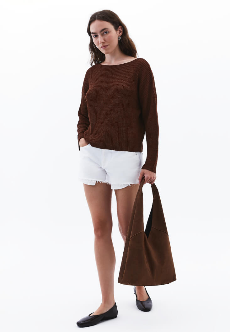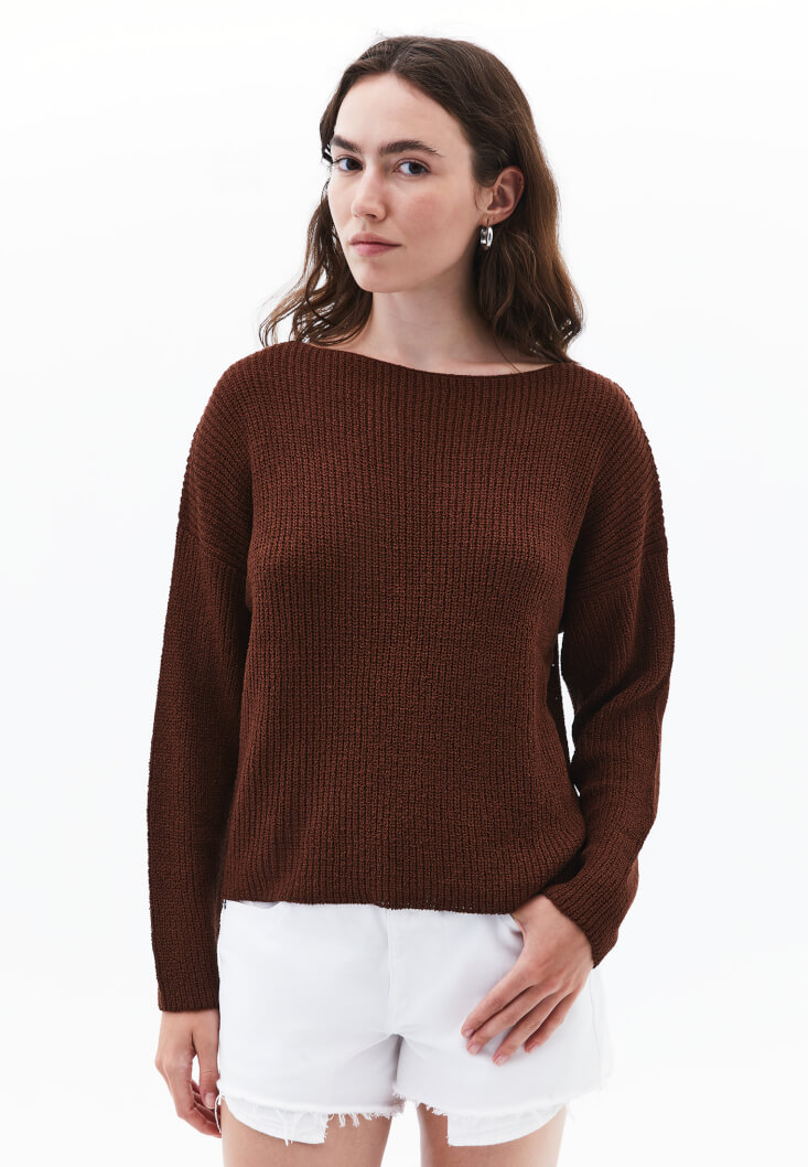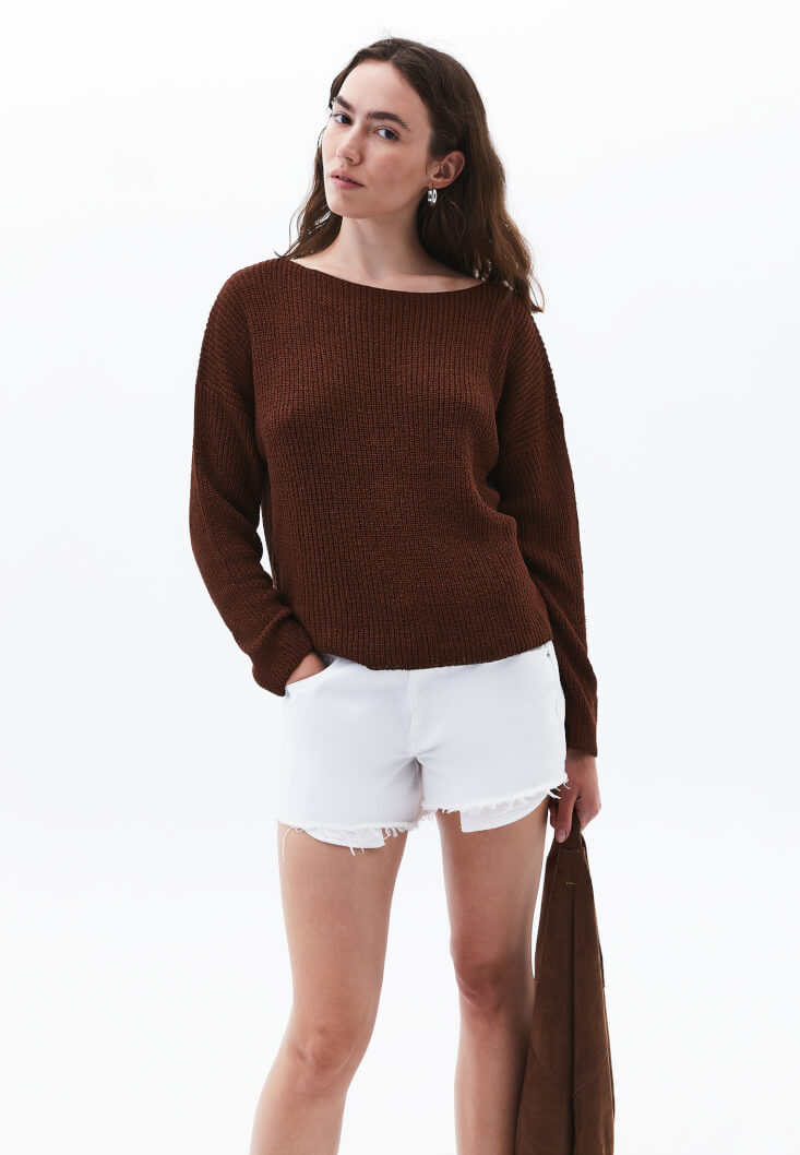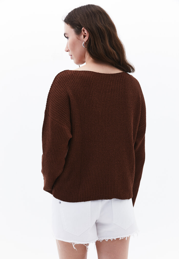 • Bayan Kahverengi Bot Yaka Triko Kazak