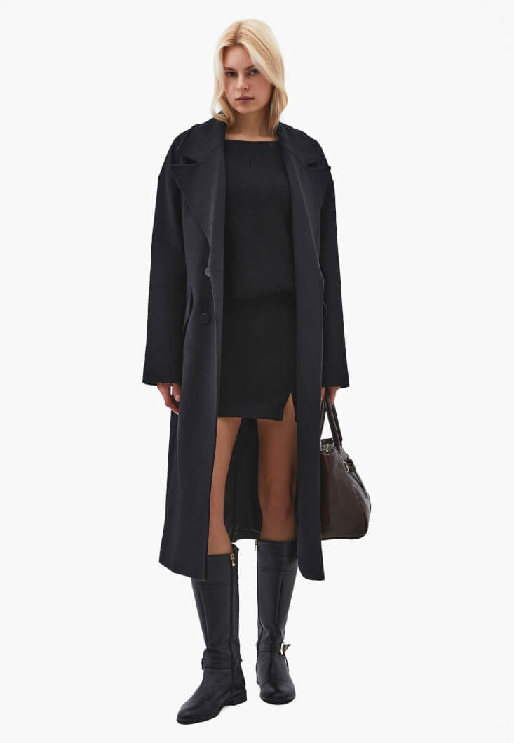 • Bayan Siyah Bot Yaka Triko Kazak