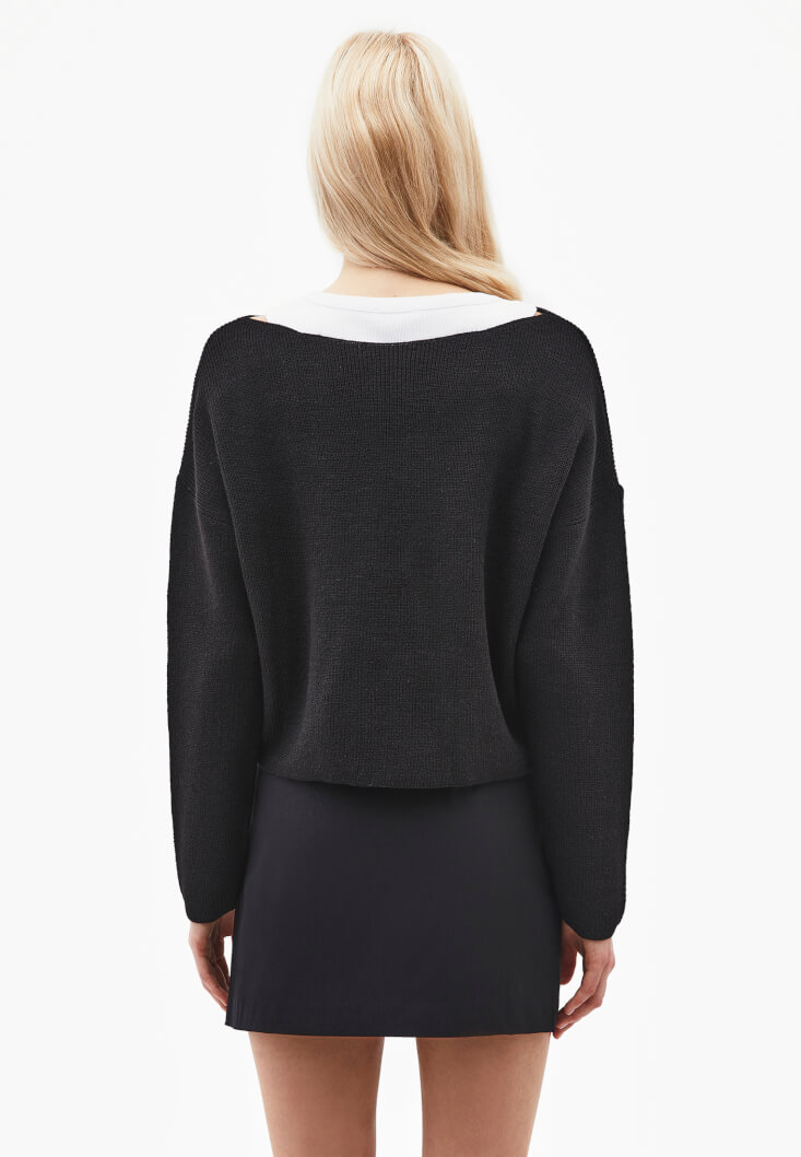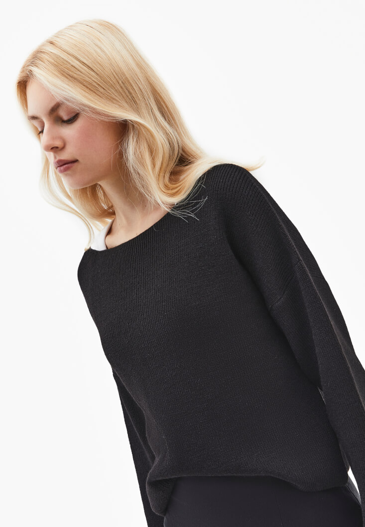 Klasik bot yaka tasarımı, omuz hattını zarifçe vurgularken silüetinize sofistike bir hava katar. Bedenden uzak, rahat kesimi (loose fit) hareket özgürlüğünüzü en üst seviyeye taşır. Triko dokusunun pürüzsüz yüzeyi ve kaliteli iplik yapısı, formunu uzun süre koruyarak sezonlar boyu favoriniz olmasını sağlar.