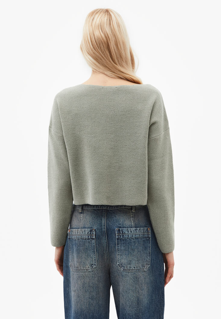 Bedenden uzak loose fit, uzun kollu, kayık yaka, uzun kollu, sıcak triko doku.
