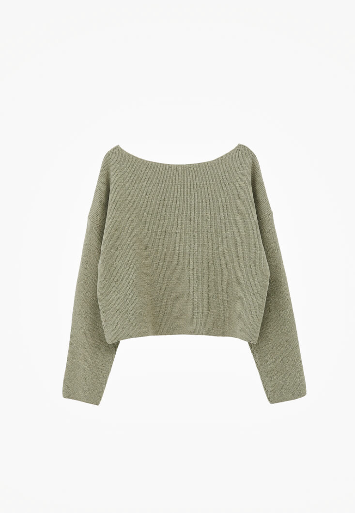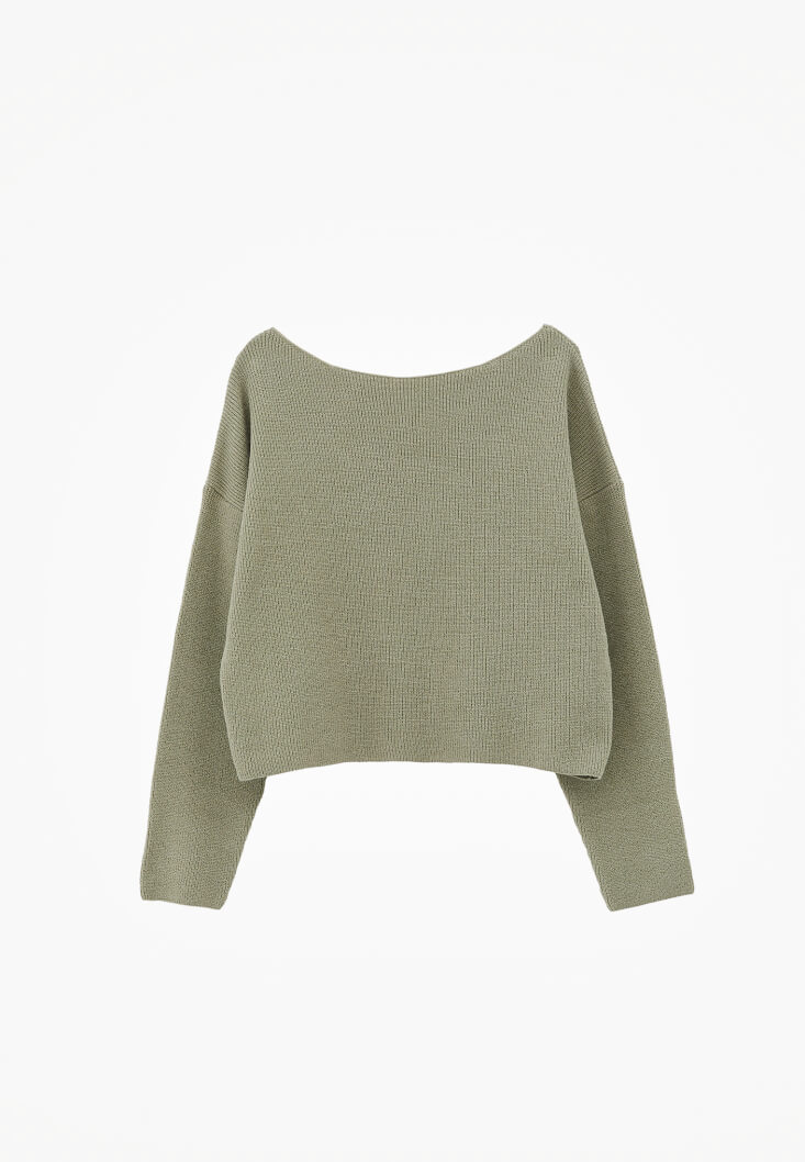 Yeşil Bot Yaka Triko Kazak