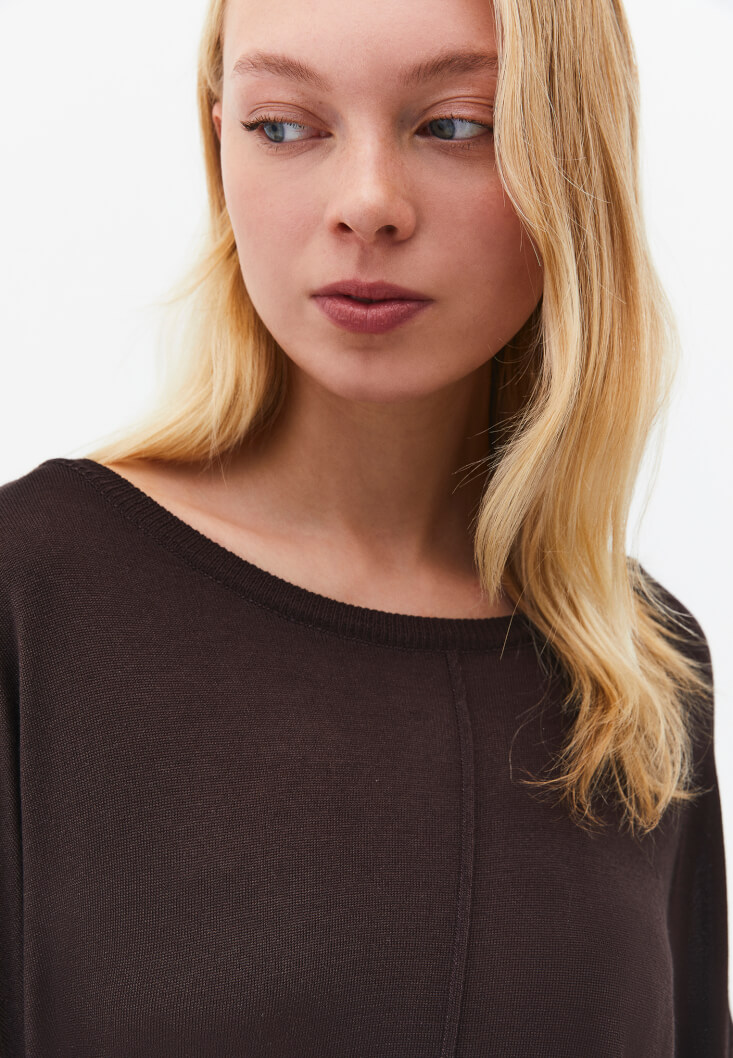 Köprücük kemiğini nazikçe ortaya çıkaran bot yaka (boat neck) tasarımı, silüetinize anında feminen bir zarafet kazandırır. Bedenden hafifçe uzak, konforlu kesimi (loose fit) sayesinde gün boyu özgürce hareket edebilir, triko örgünün sıcaklığını ve kalitesini her dokunuşta hissedebilirsiniz. Formunu uzun süre koruyan yüksek kaliteli yapısı, bu tasarımı sezonlar boyu vazgeçilmeziniz kılacak.