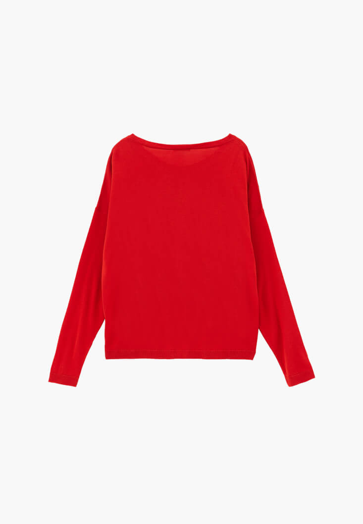 • Bayan Kırmızı Bot Yaka Triko Kazak