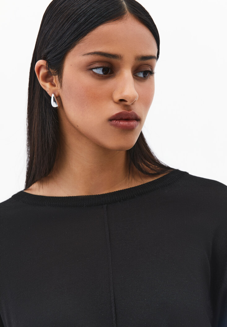 Viskon karışımlı özel doku, bedenden uzak loose fit, uzun kollu, bot yaka.