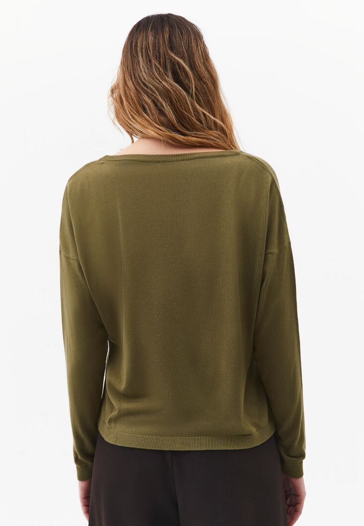 Yeşil Bot Yaka Triko Kazak