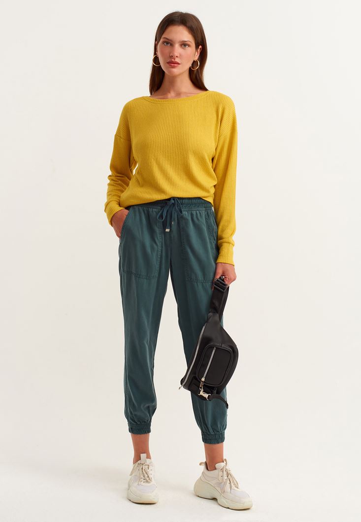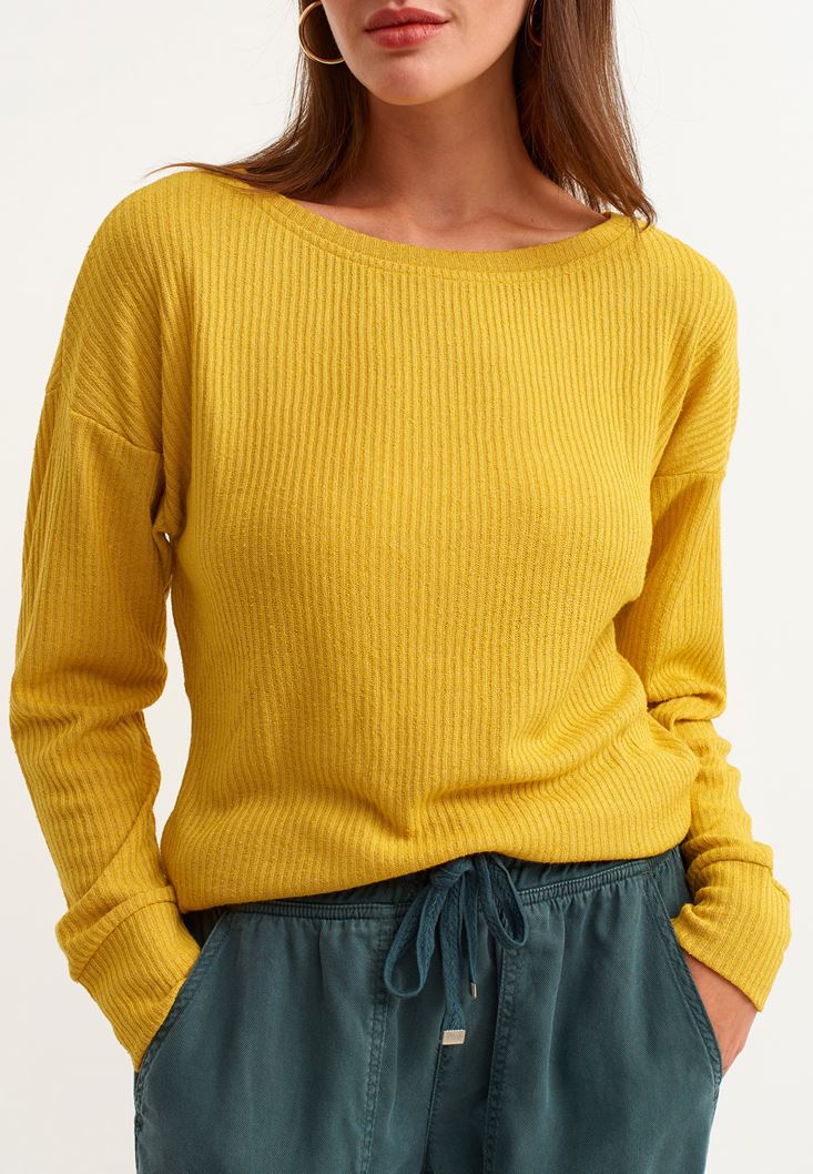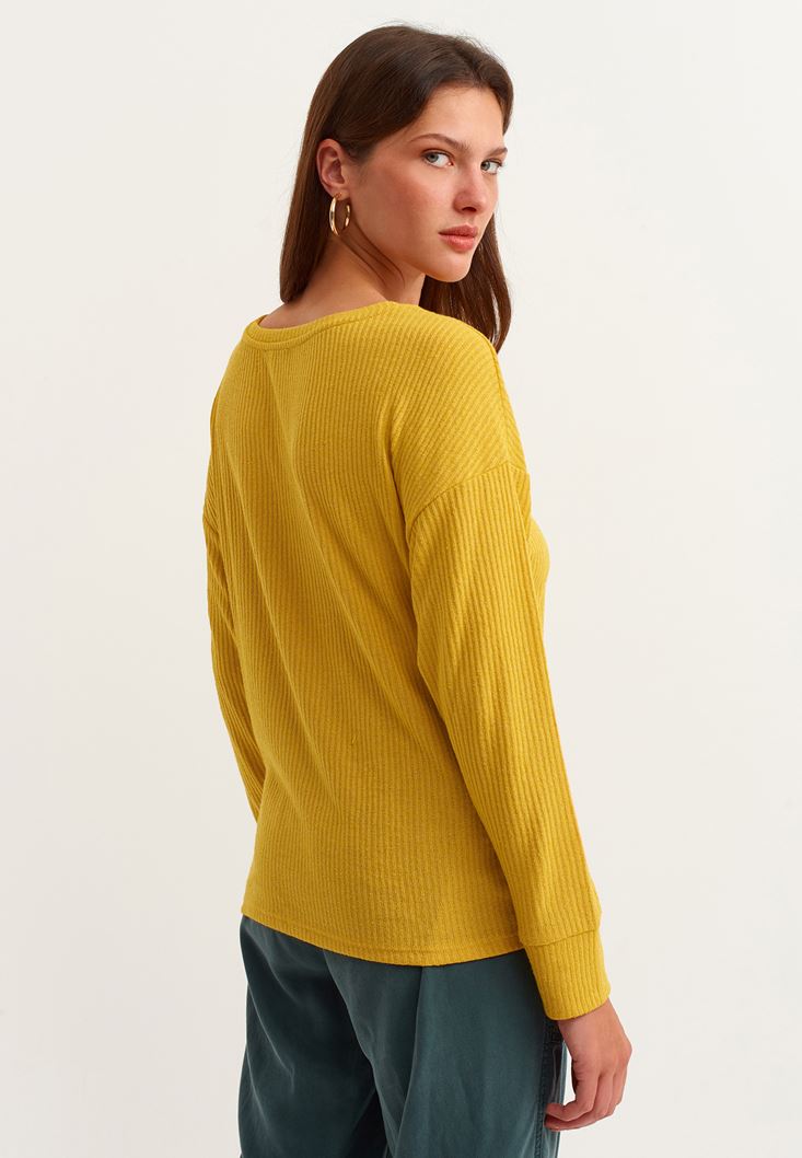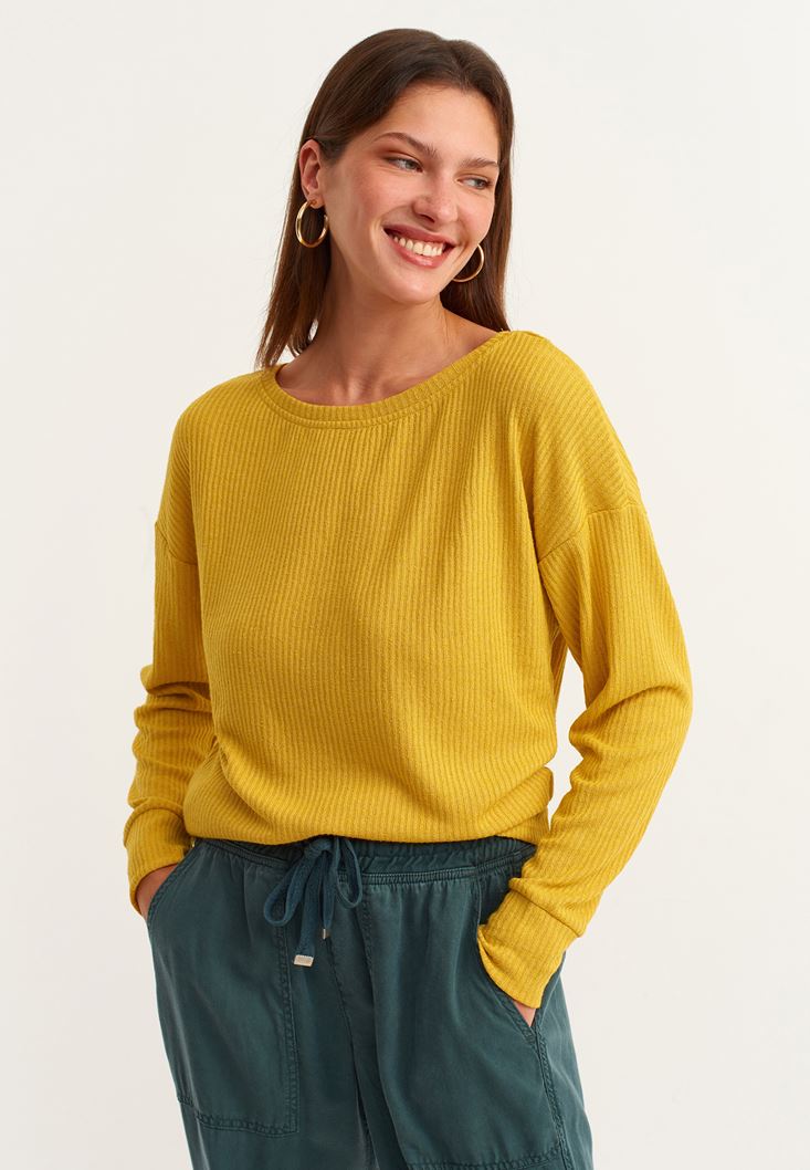 • Bayan Sarı Bot Yaka Uzun Kollu Basic