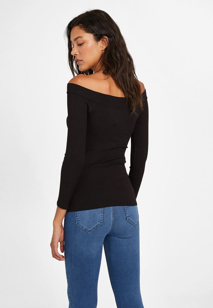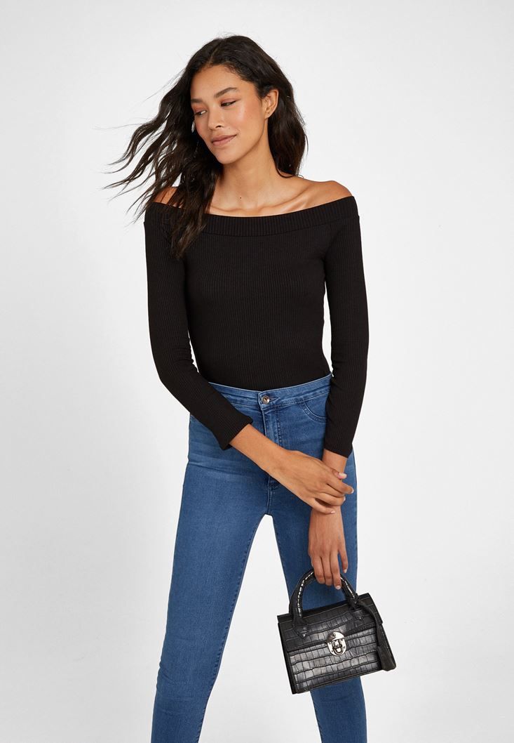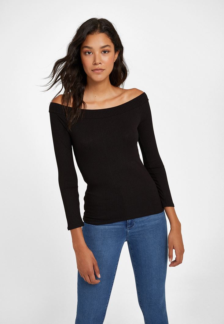 • Bayan Siyah Bot Yaka Uzun Kollu Bluz