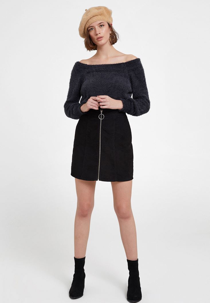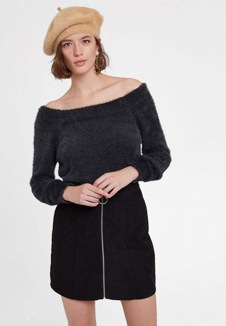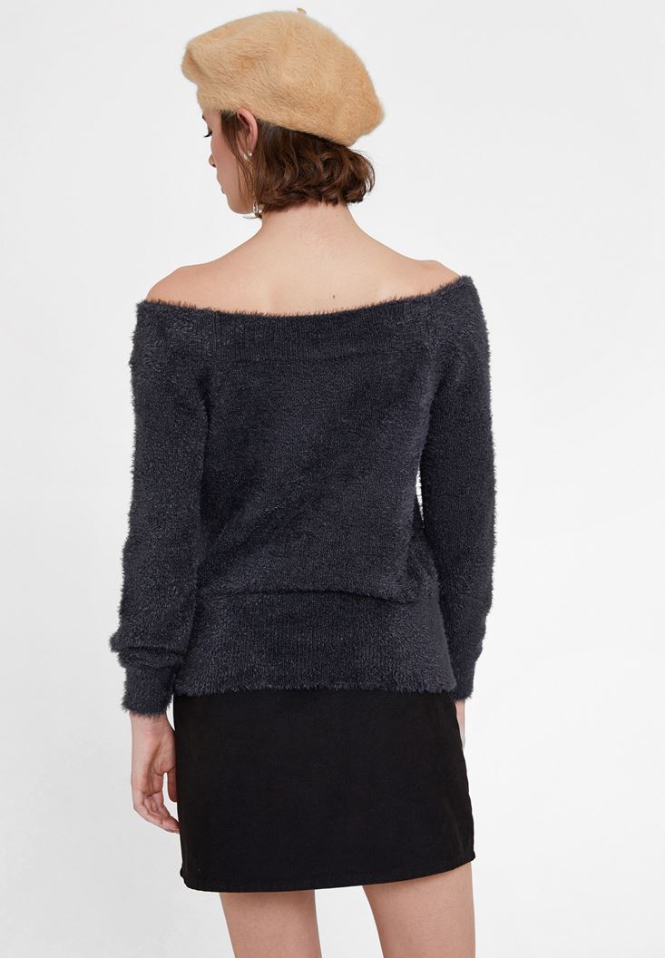 • Bayan Gri Bot Yaka Uzun Kollu Triko