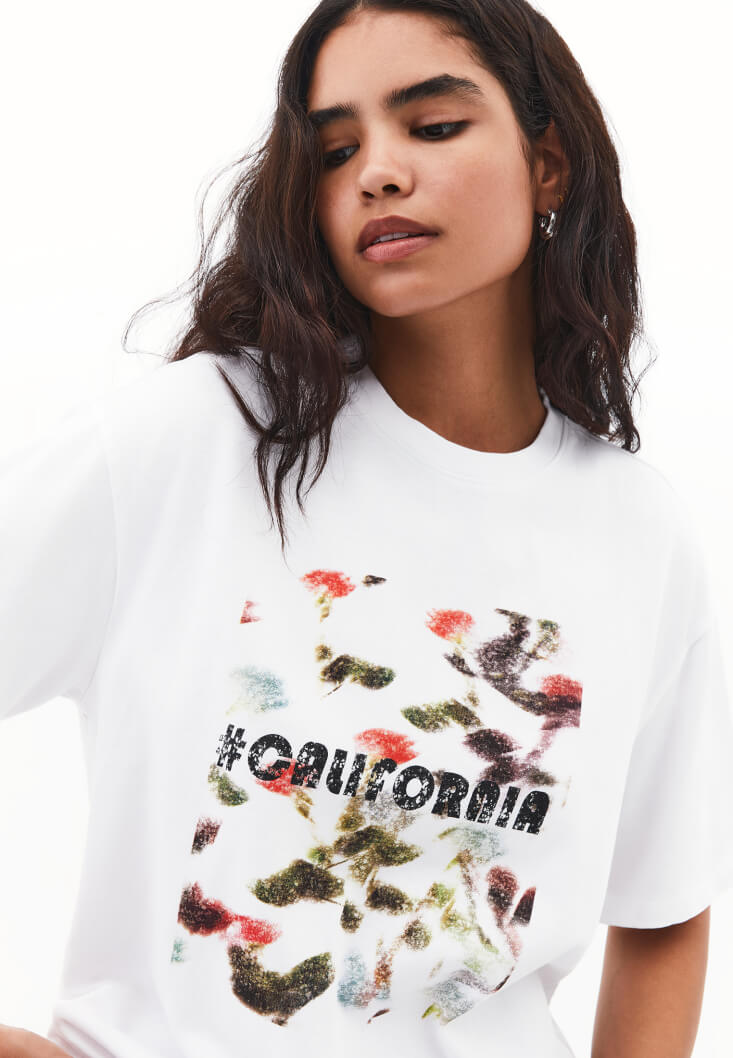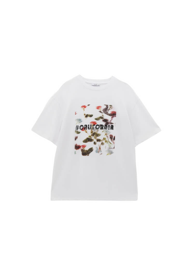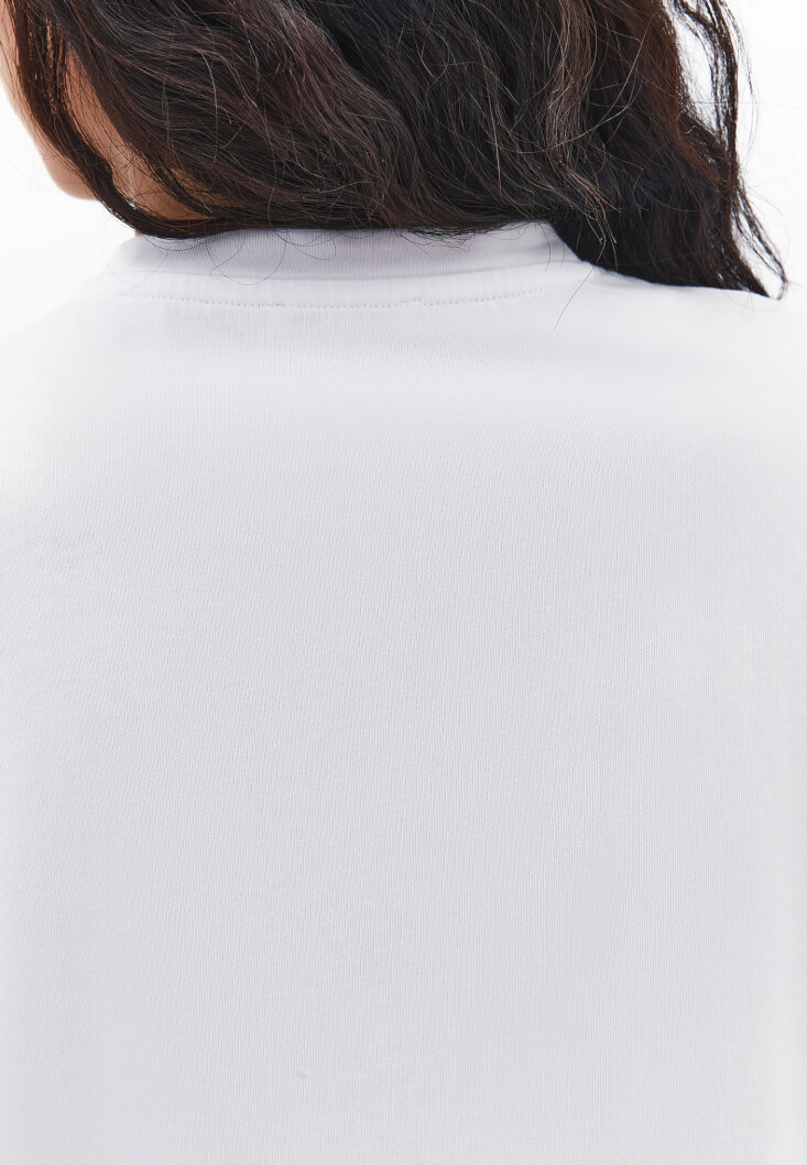 • Bayan Beyaz Boyfriend Baskılı Tişört