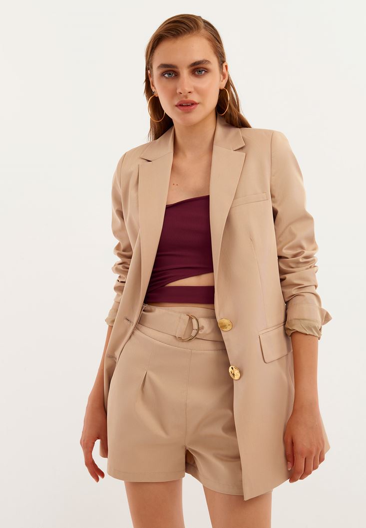 • Bayan Bej Boyfriend Blazer Ceket ( TENCEL™ )