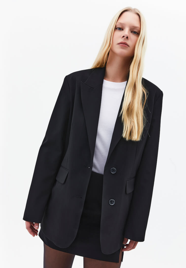 • Bayan Siyah Boyfriend Blazer Ceket