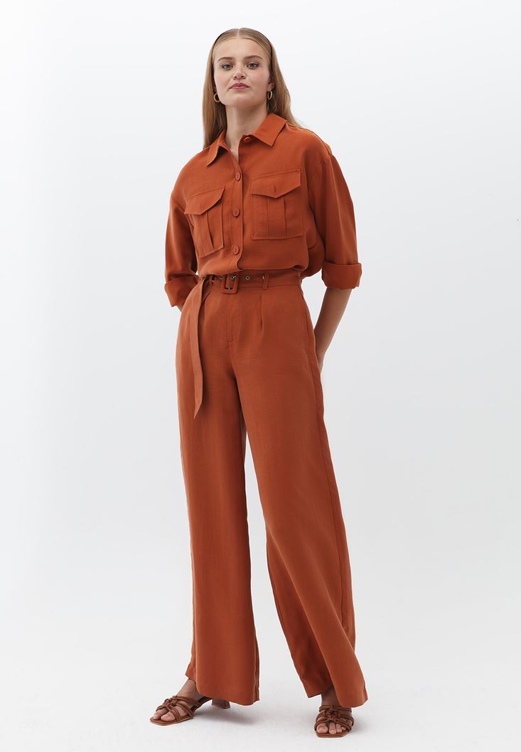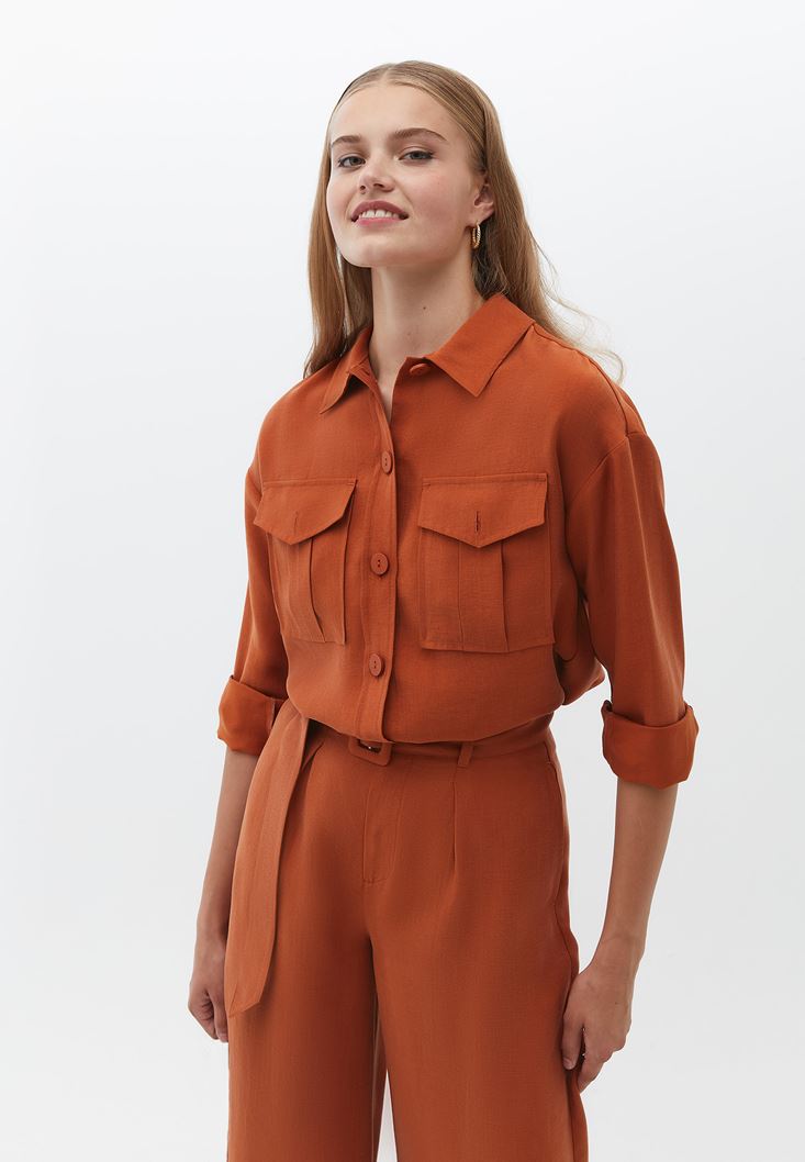 • Bayan Kiremit Boyfriend Cepli Gömlek ( TENCEL™ )