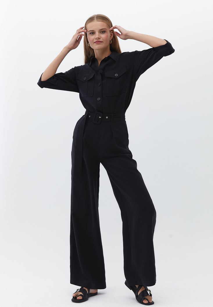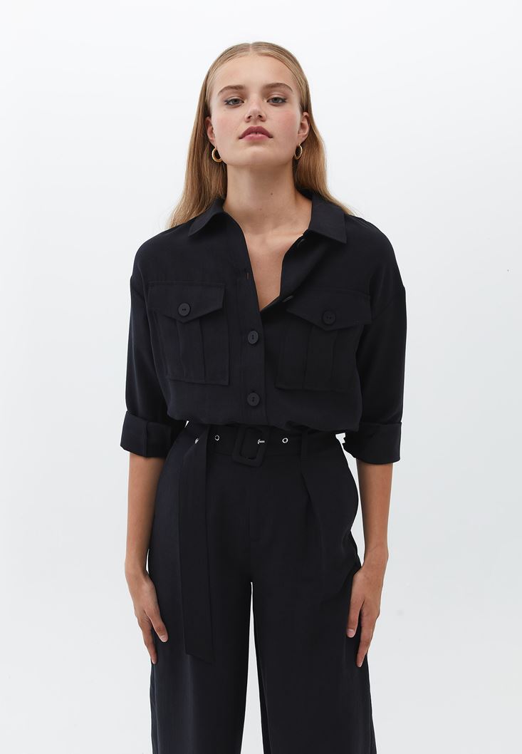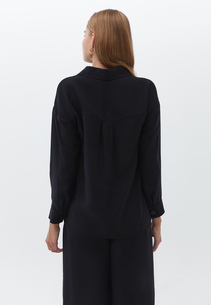 • Bayan Siyah Boyfriend Cepli Gömlek ( TENCEL™ )