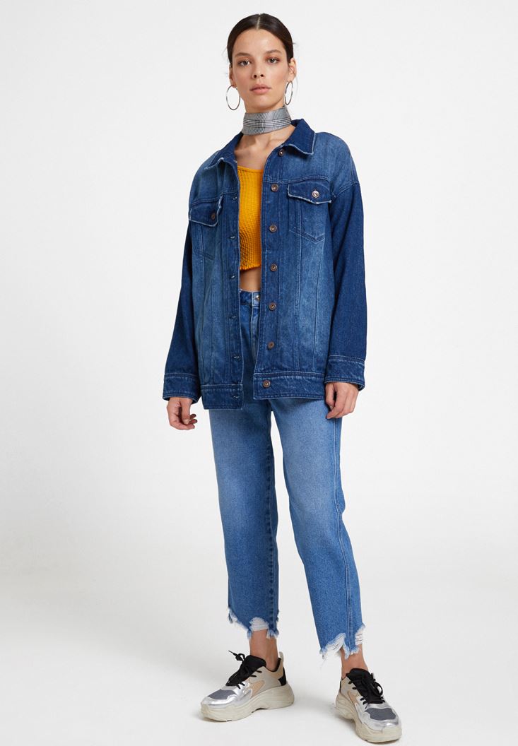 Boyfriend Denim Ceket modeli dökümlü kesimi, oversize modasini yakindan takip edenlerin dikkatini çekecek detaylari ile oldukça modern ceket modelleri arasinda yer aliyor. Genis kesimi ile boyfriend ve oversize modasini basarili bir sekilde yansitan ceket modelinde tercih edilen cep, dügme ve çizgi detaylari klasik ceket tasarim ruhunu ön plana çikariyor. Sokak modasi kombinlerinden günlük tarziniza kadar farkli sekillerde kullanabileceginiz ceket modeli ile konforlu bir sikliga sahip olacaksiniz. Pamuk dokusu ile her zaman rahat hissetmenize yardimci olan ceket modeli bu dokunun nefes alan yapisi ve yüksek nem emiciligi sayesinde size unutulmaz bir kullanim deneyimi sunacak. OXXO’nun kendine has tasarim ilhamini yansitan ceket modelleri arasinda yer alan tasarimi severek kullanacaksiniz.