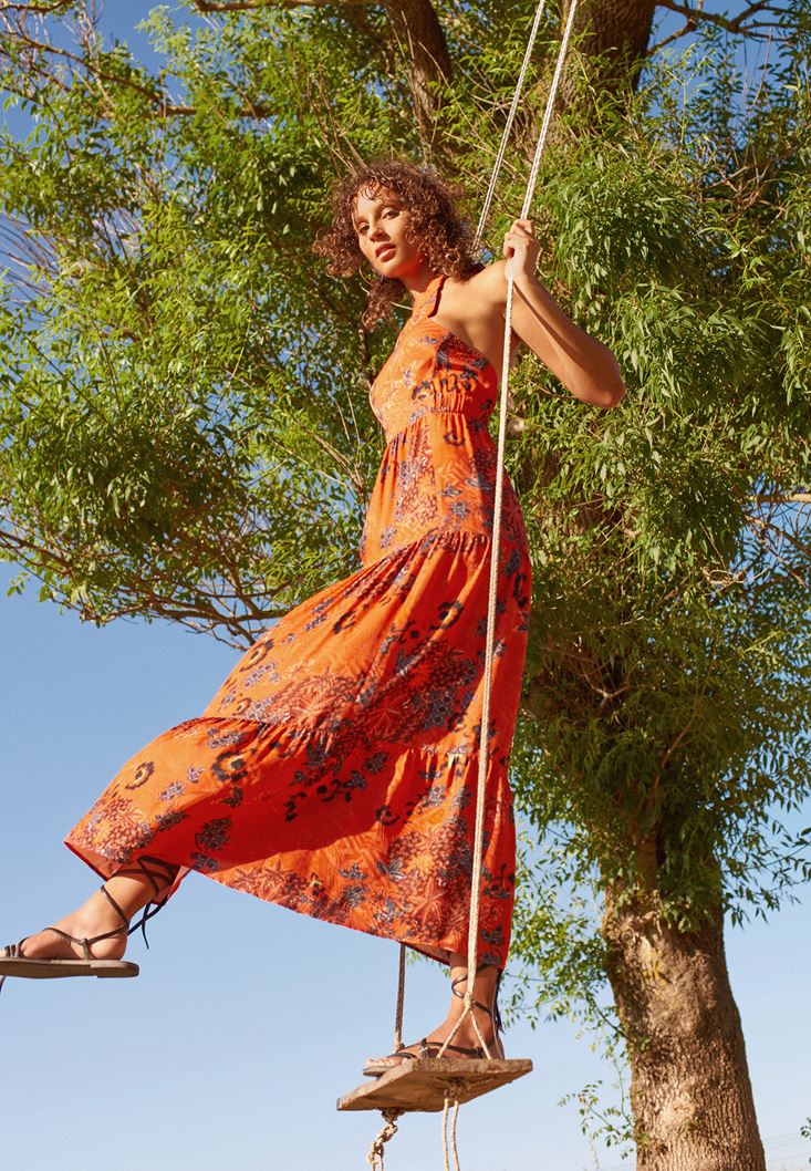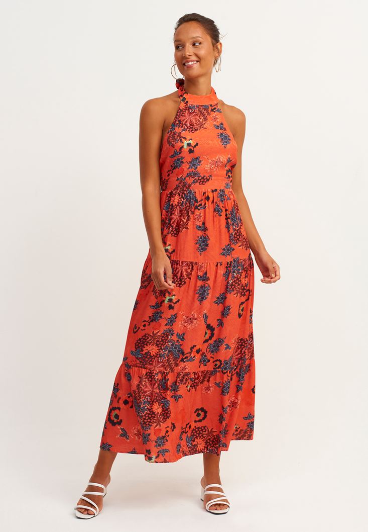 Oxxo Boyundan Bağlamalı Desenli Maxi Elbise 2125663190