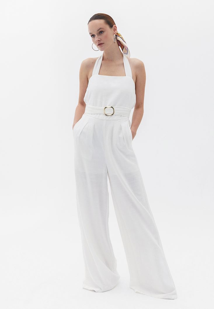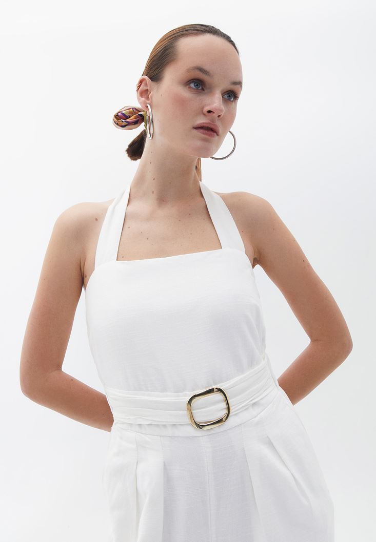 • Bayan Krem Boyundan Bağlamalı Tulum