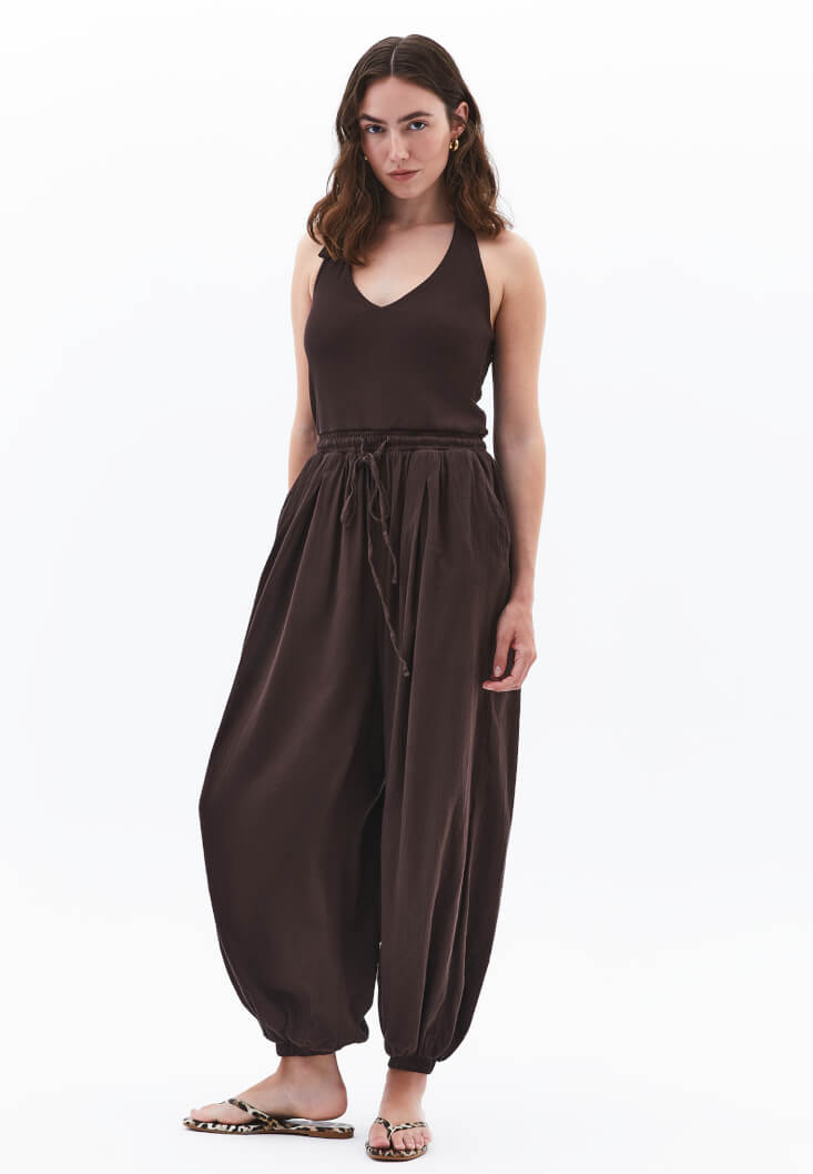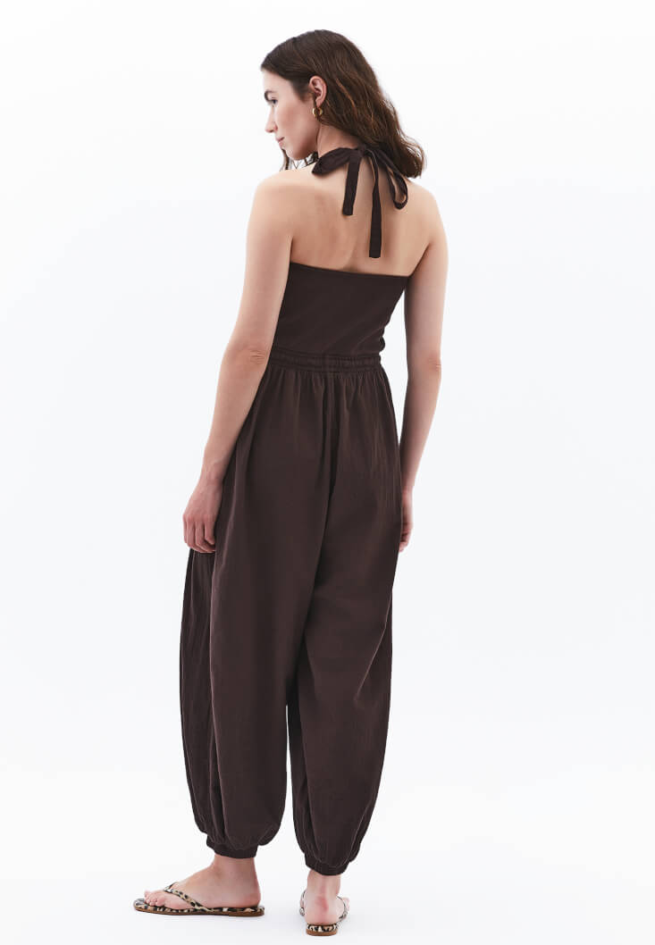 • Bayan Kahverengi Boyundan Bağlamalı Tulum