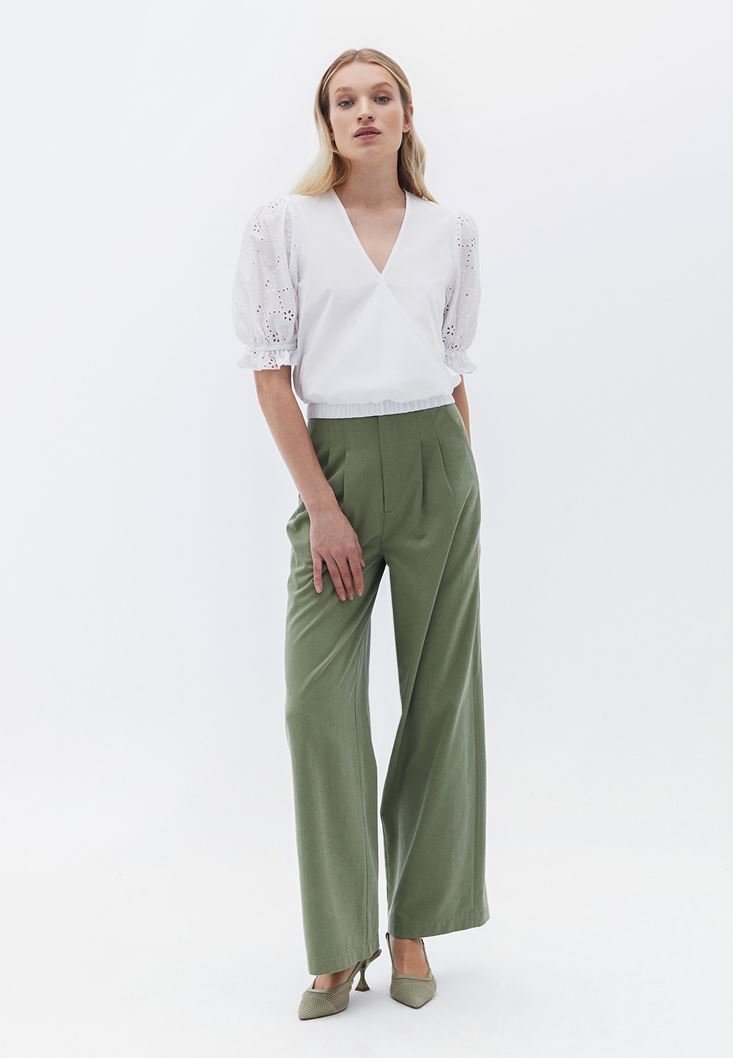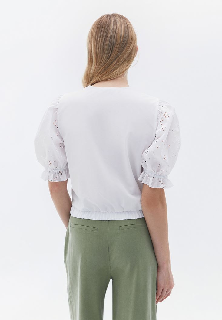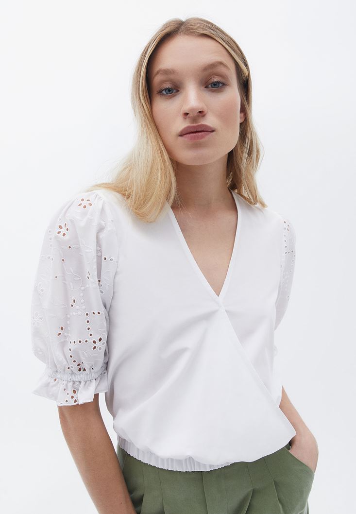 • Bayan Beyaz Brodeli Pamuklu Bluz