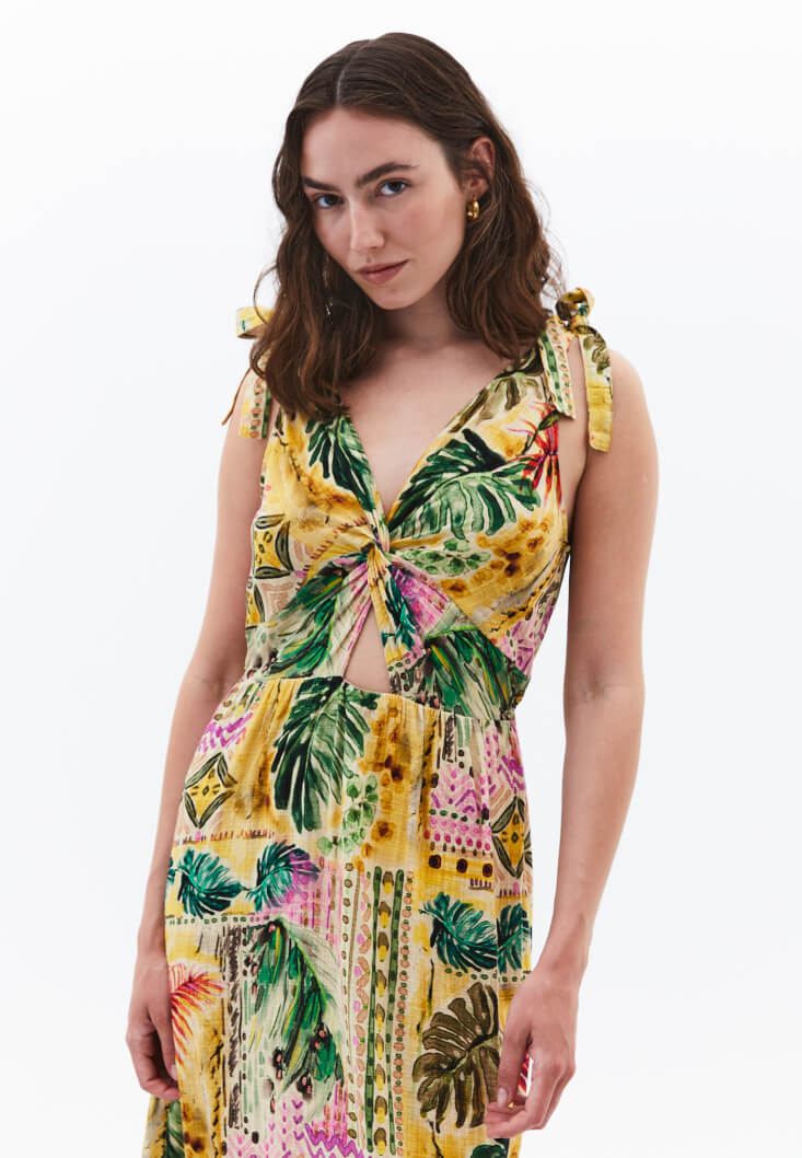 • Bayan Çok Renkli Burgu Detaylı Midi Elbise
