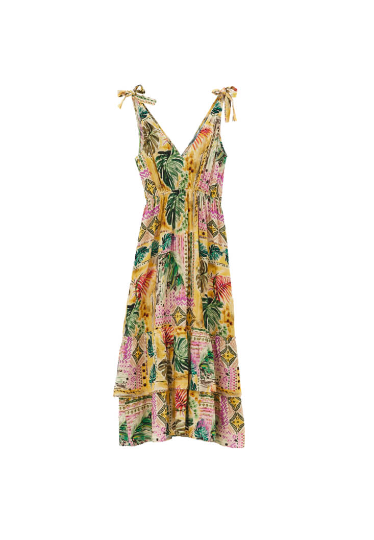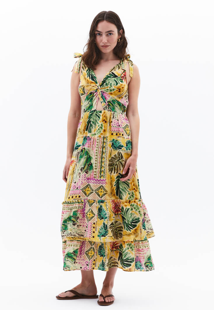 • Bayan Çok Renkli Burgu Detaylı Midi Elbise