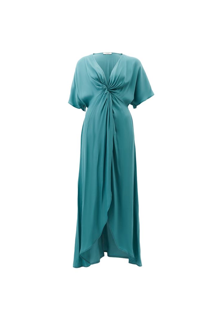 • Bayan Yeşil Burgu Detaylı Uzun Elbise