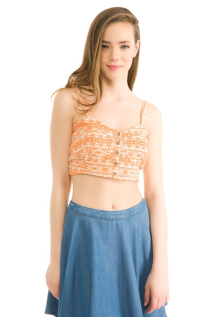 Arkadan çıtçıtlı, önü düğmeli gürünümlü, omuz askılı kısa büstiyer.