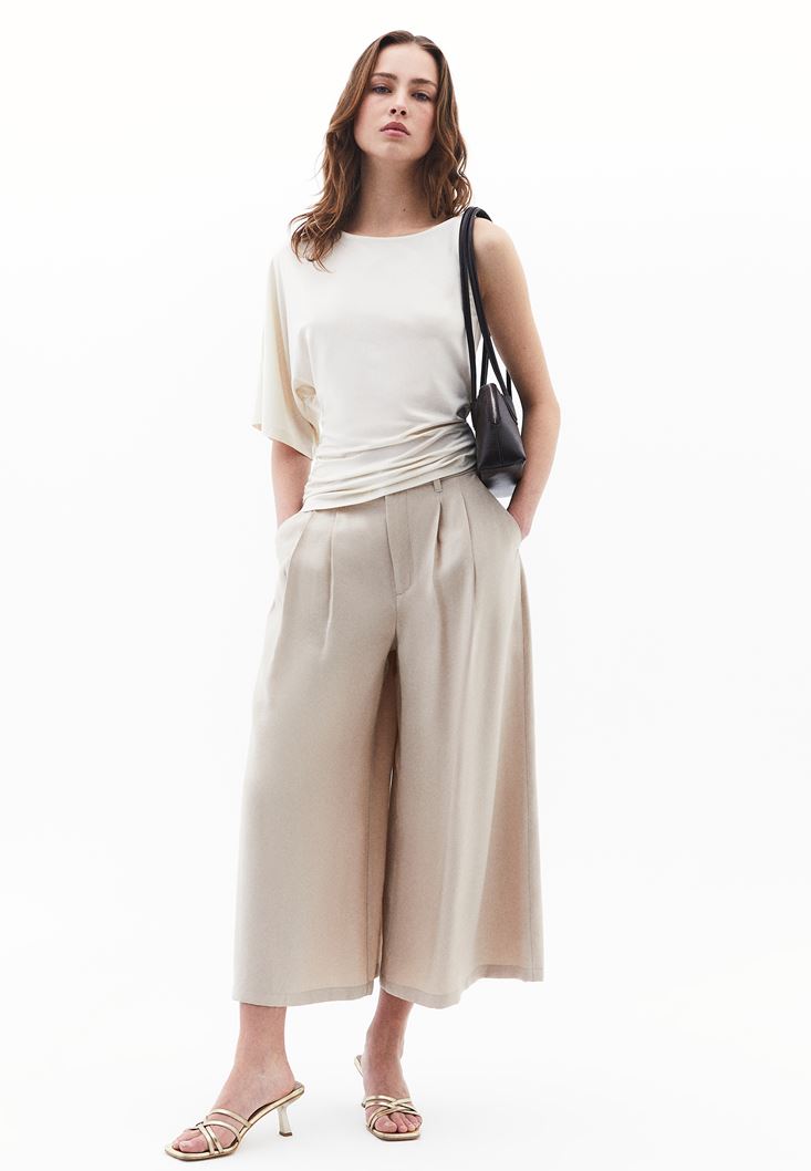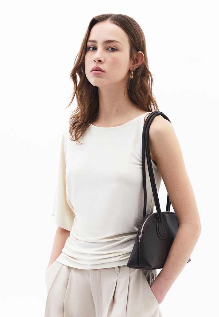• Bayan Krem Büzgü Detaylı Asimetrik Bluz