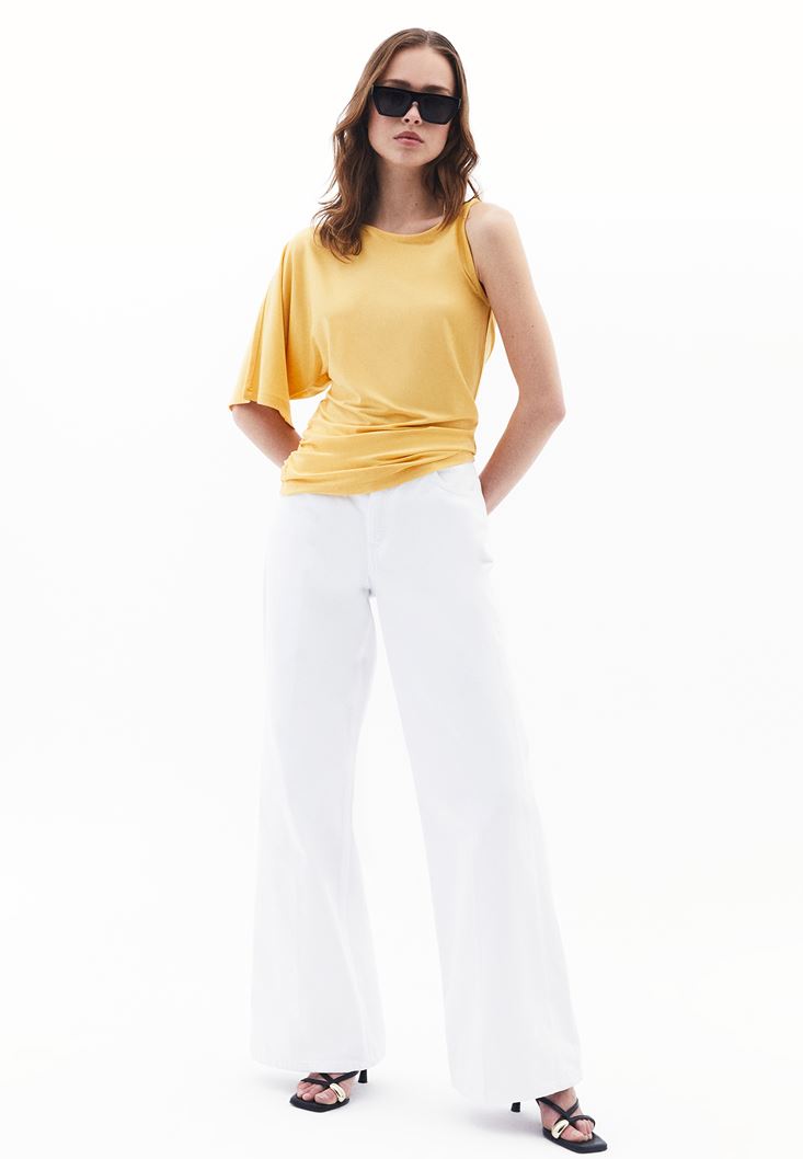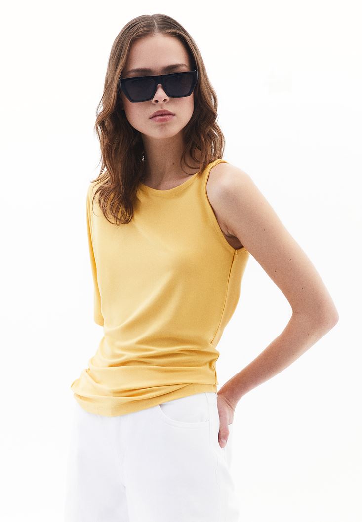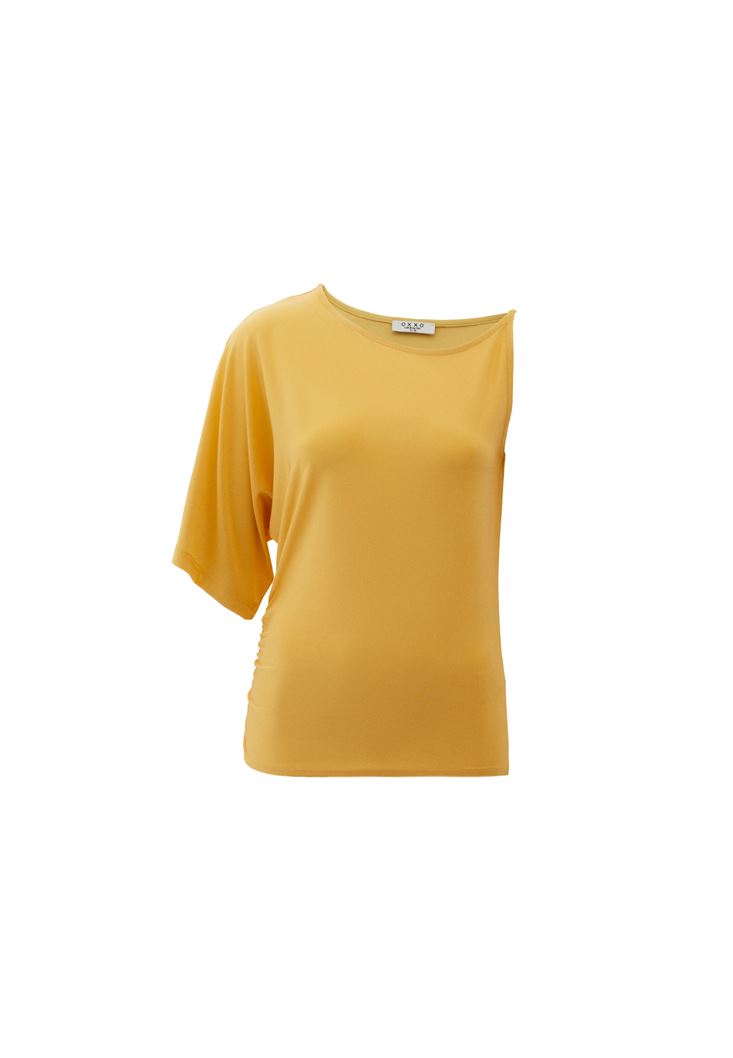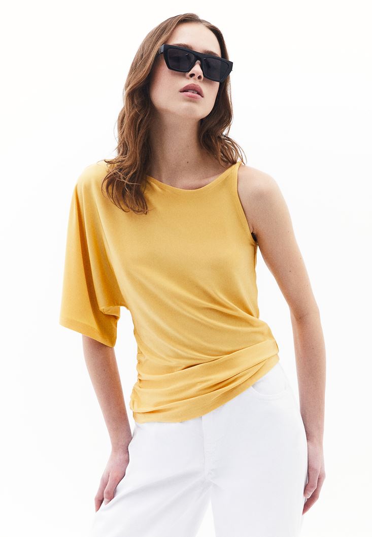 Sarı Büzgü Detaylı Asimetrik Bluz