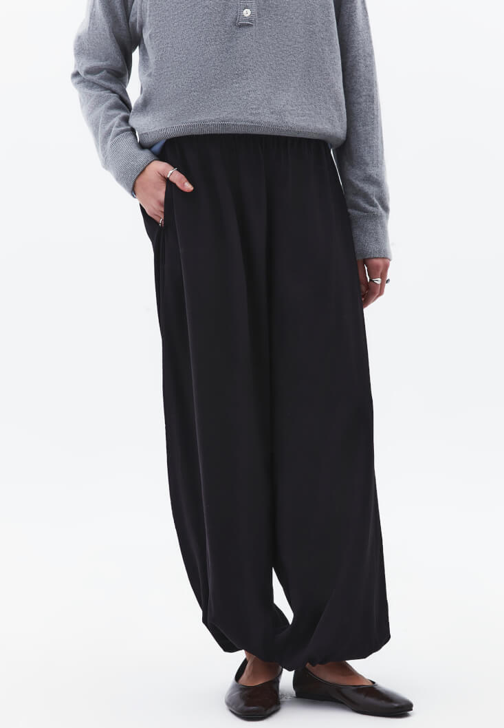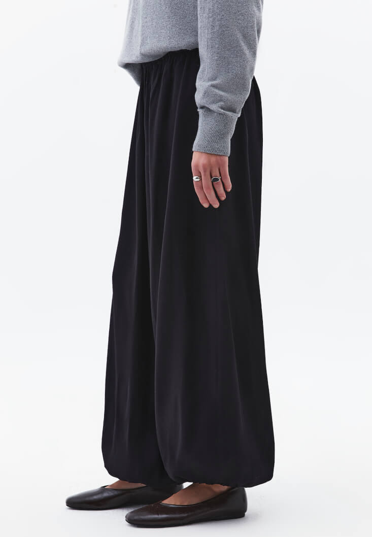 • Bayan Siyah Büzgü Detaylı Balon Pantolon